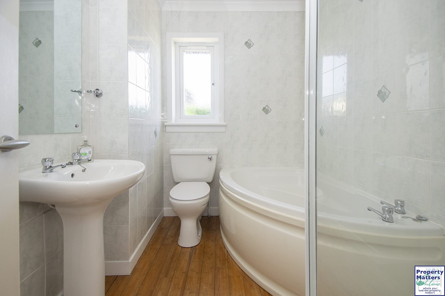 This lovely family home provides versatile and spacious living accommodation throughout. The accommodation of a welcoming entrance hallway; well-proportioned front facing lounge with dining area with two window formation providing an abundance of natural light; kitchen housing ample range of base and wall units with complementary worktops with tiled splash back areas, integrated hob, hood and oven. Plumbing for automatic washing machine, three bedrooms two with fitted storage wardrobes. Four-piece family bathroom comprising of w.c, wash hand basin, corner bath and separate shower enclosure.