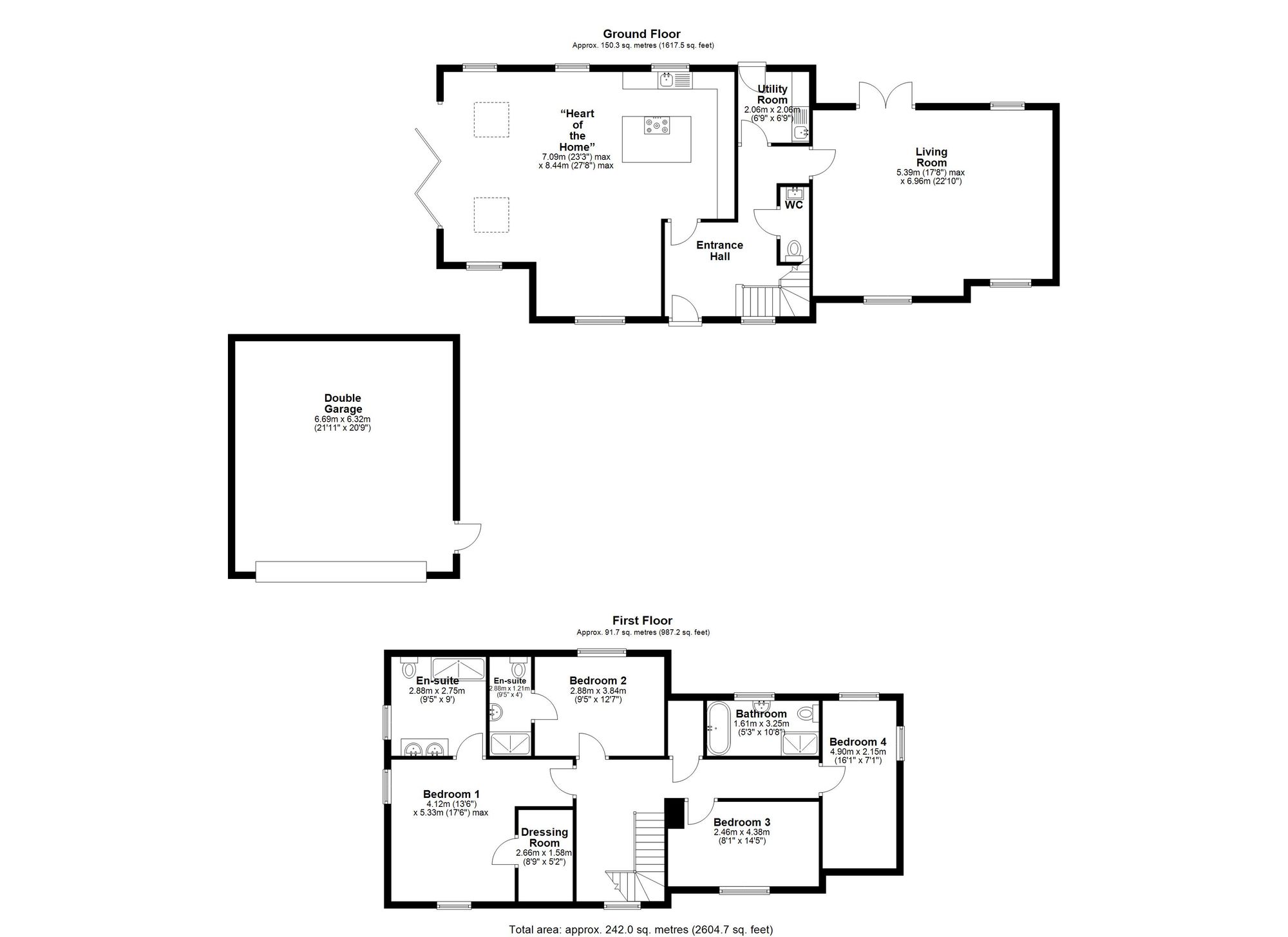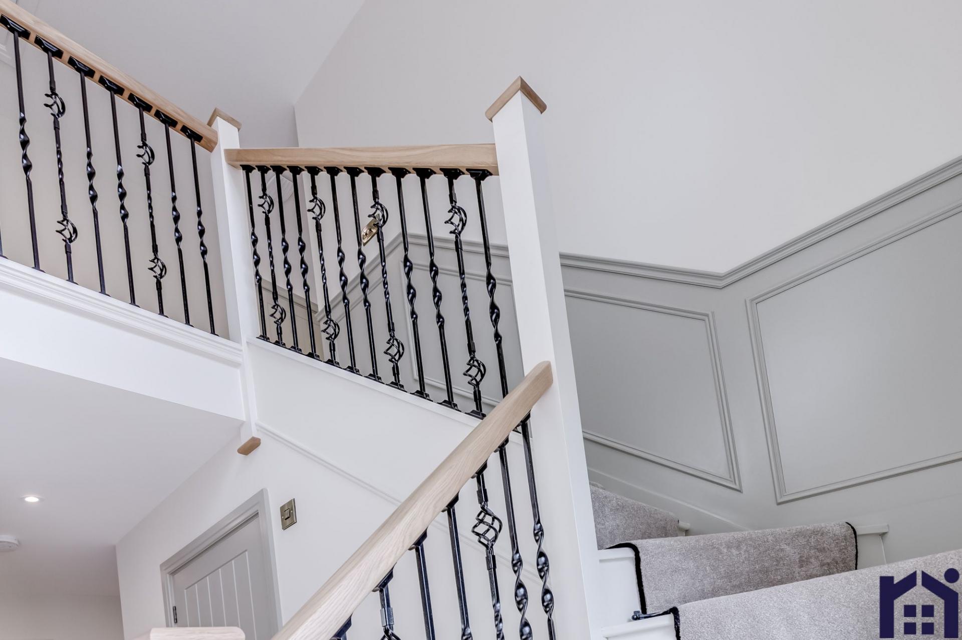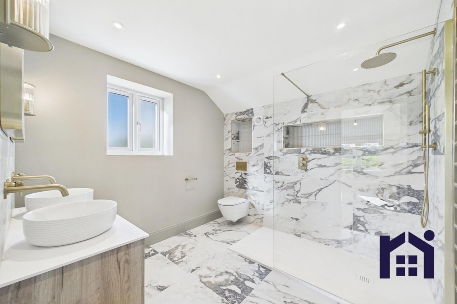 Back inside, elegant oak and iron stairs with runner lead up to the first floor where the spacious landing gives access to all rooms. The master suite has windows to two elevations, walk in dressing room and sumptuous en suite comprising twin floating wash hand basins, rainfall mixer shower in walk in cubicle, wc and ladder heated towel rail. Bedroom two also benefits from en suite making it a model guest suite if required. There are two further double bedrooms with the family bathroom comprising panelled walls, bath, wash hand basin on vanity, floating wc, rainfall mixer shower in walk in cubicle and ladder heated towel rail.