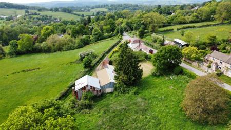 A gateway from the garden leads through to a good sized paddock with original chimney from the wood yard. There is also a separate five bar gate giving access off the rear track, redundant brick-built stable.