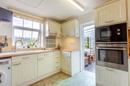 Kitchen - 3.20m x 3.15m (10'6 x 10'4) - One and a half bowl single drainer sink unit with mixer tap, cupboard under, base and wall mounted units, fitted electric oven, microwave over, plumbing for washing machine, part pine panelling, rear aspect window with a superb unspoilt outlook over gardens and grounds.