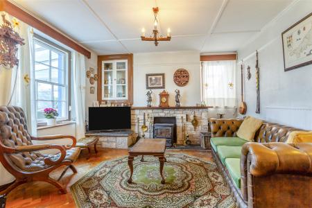 Living Room - 7.32m x 3.73m (24'0 x 12'3) - Stone fireplace with inset wood burning stove, parquet flooring, two single radiators, picture rail, exposed timbers, side and rear aspect windows. Half glazed door through to: