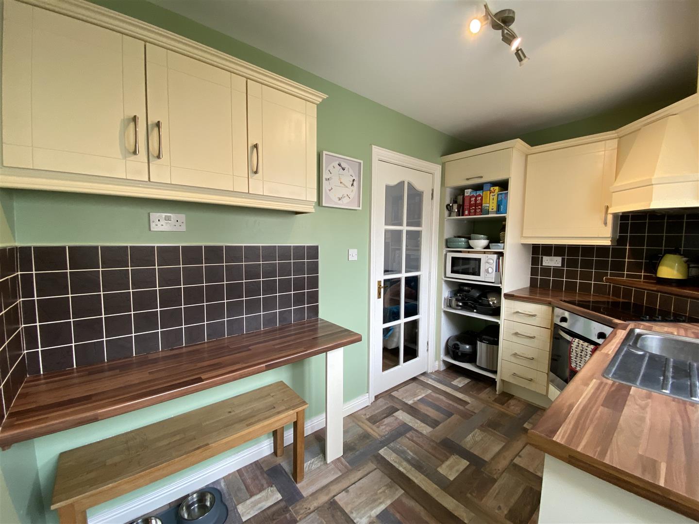 3.45m x 1.98m (11'4" x 6'6") - Having eye and low level units, matching pelmet over window and extractor canopy, tiling between units, hob and underoven, space for fridge / freezer, breakfast bar.