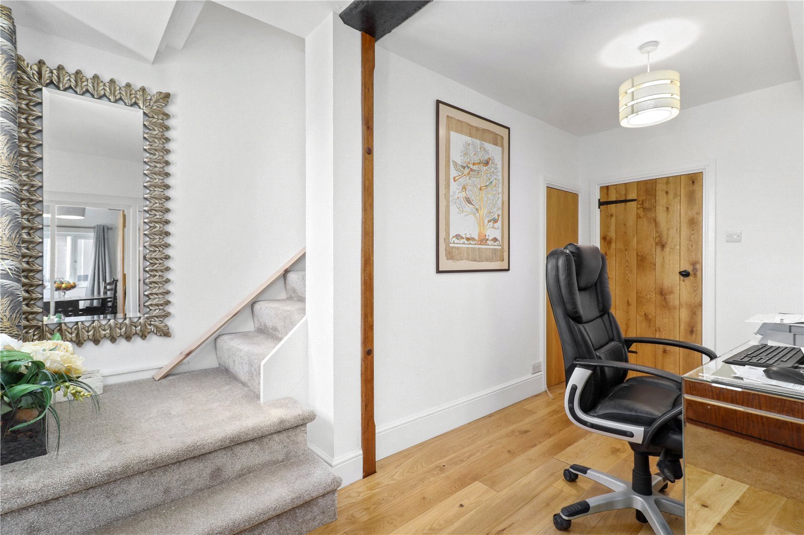 FORMAL DINING ROOM / POTENTIAL BEDROOM FOUR: Approached from the reception hall via a bespoke oak character door and enjoying a double aspect and feature brick fireplace, attractive period beam to ceiling, radiator, double glazed window with aspect to front and side.