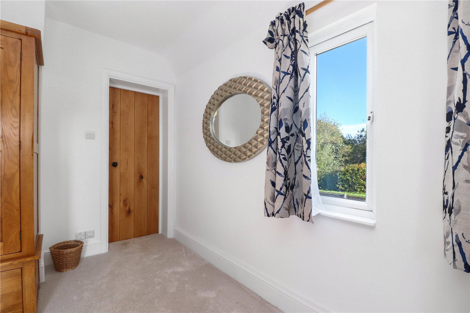 BEDROOM TWO: Approached from the landing via a bespoke oak character door and being a double sized and double aspect room with radiator, double glazed window with aspect to front and views beyond, further double-glazed window with aspect to side.