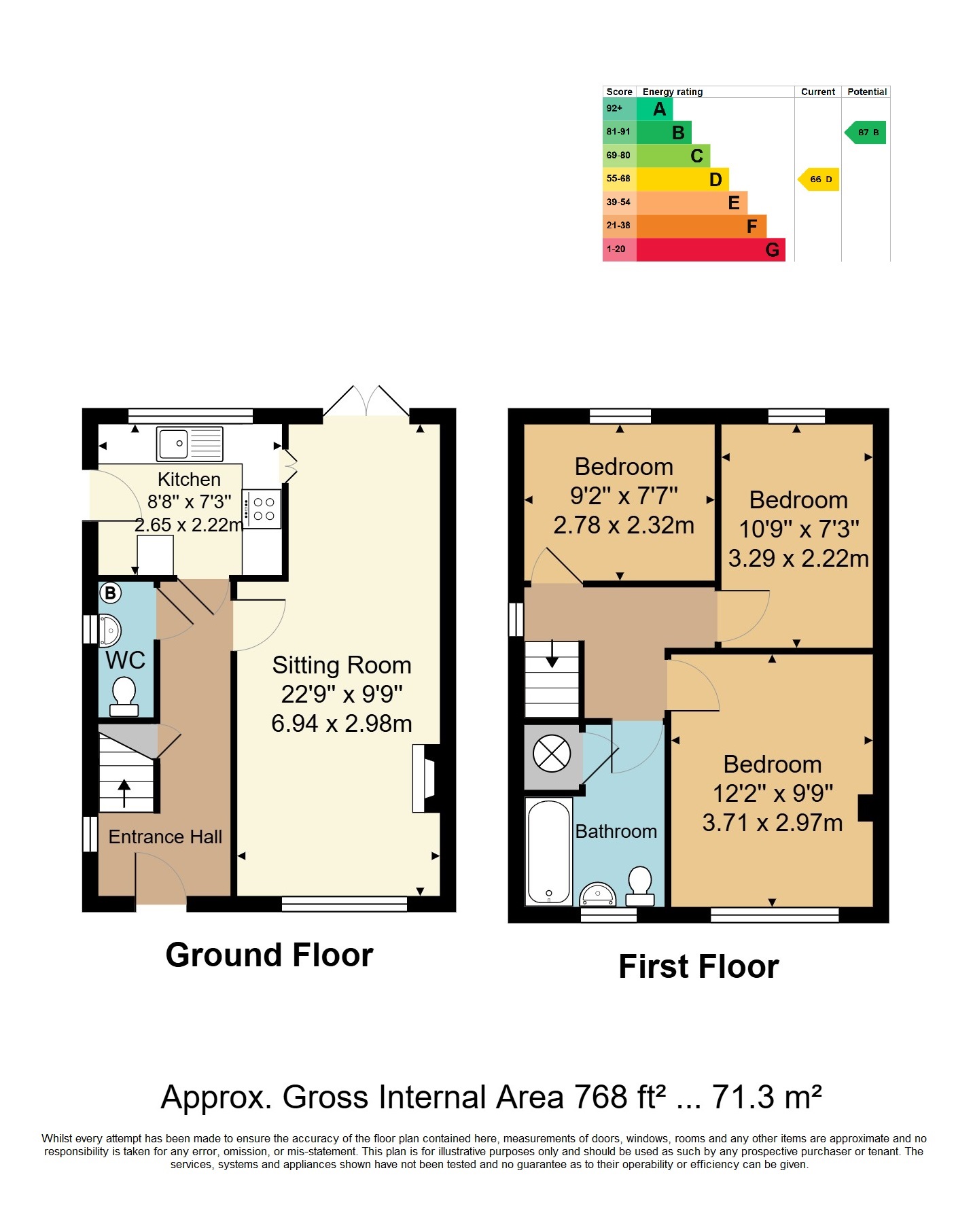 Entrance Hall - Cloakroom - Sitting/Dining Room - Kitchen - First Floor Landing - Three Bedrooms - Bathroom - Courtyard Garden - Off Road Parking For One Car