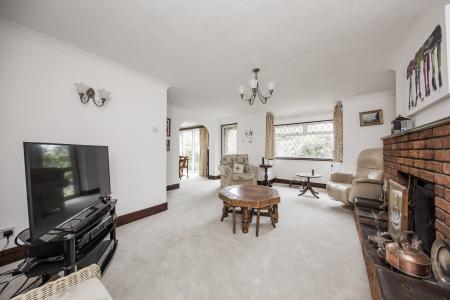 SITTING ROOM: Dual aspect with leaded light double glazed windows and double glazed door leading to the garden. Feature fireplace with open fire and brick surround. Built-in storage cupboard. Radiators.