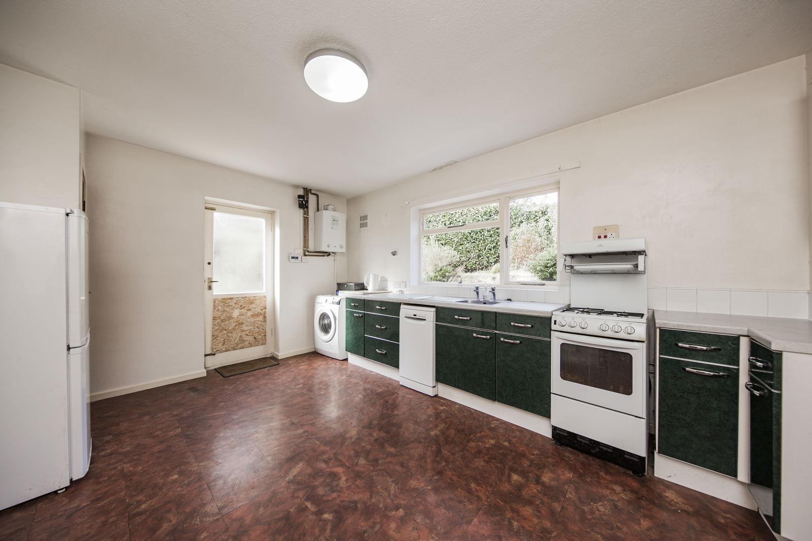 KITCHEN/BREAKFAST ROOM: Window overlooking the rear garden. Matching wall and base cupboards. Laminate worktop with inset stainless steel sink. Space for cooker, slimline dishwasher, washing machine and upright fridge/freezer. Wall mounted gas-fired boiler. Built-in storage cupboard. Part-glazed door to the side. Radiator.