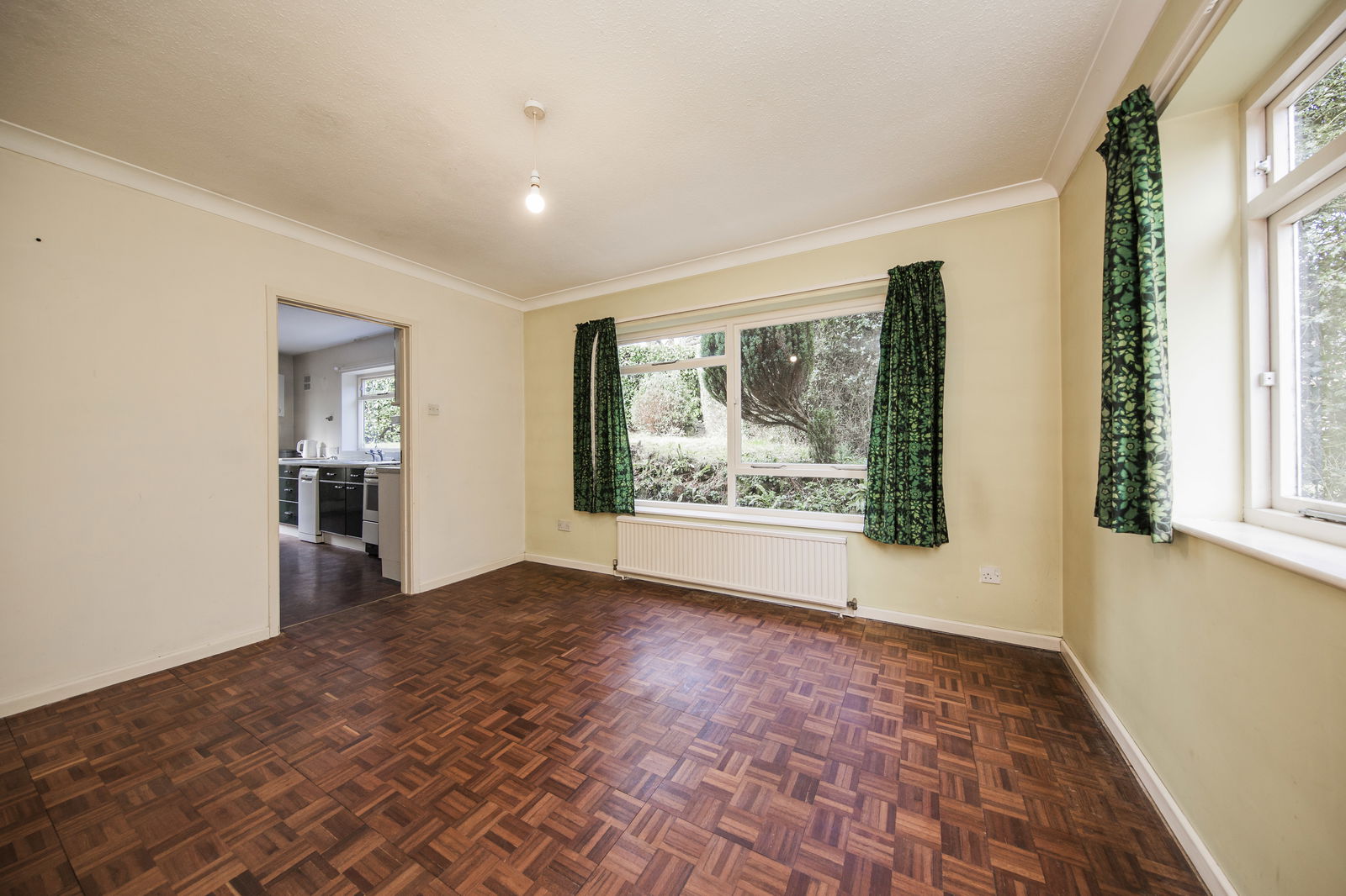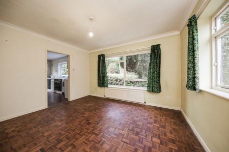 DINING ROOM: Window overlooking the rear garden. Mosaic wooden flooring. Coved ceiling. Radiator.