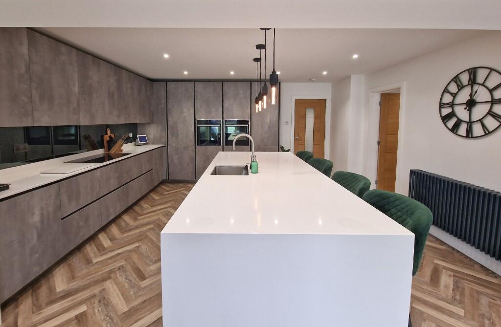 Kitchen Diner:- - 4.83m x 3.05m (15'10 x 10') - High specification modern kitchen with separate utility room. Fitted units with quartz work surfaces, with a quartz island breakfast bar and food prep area. Two fitted ovens, sink with mixer tap, hob and dishwasher, all compliment a perfectly designed kitchen. Radiator.