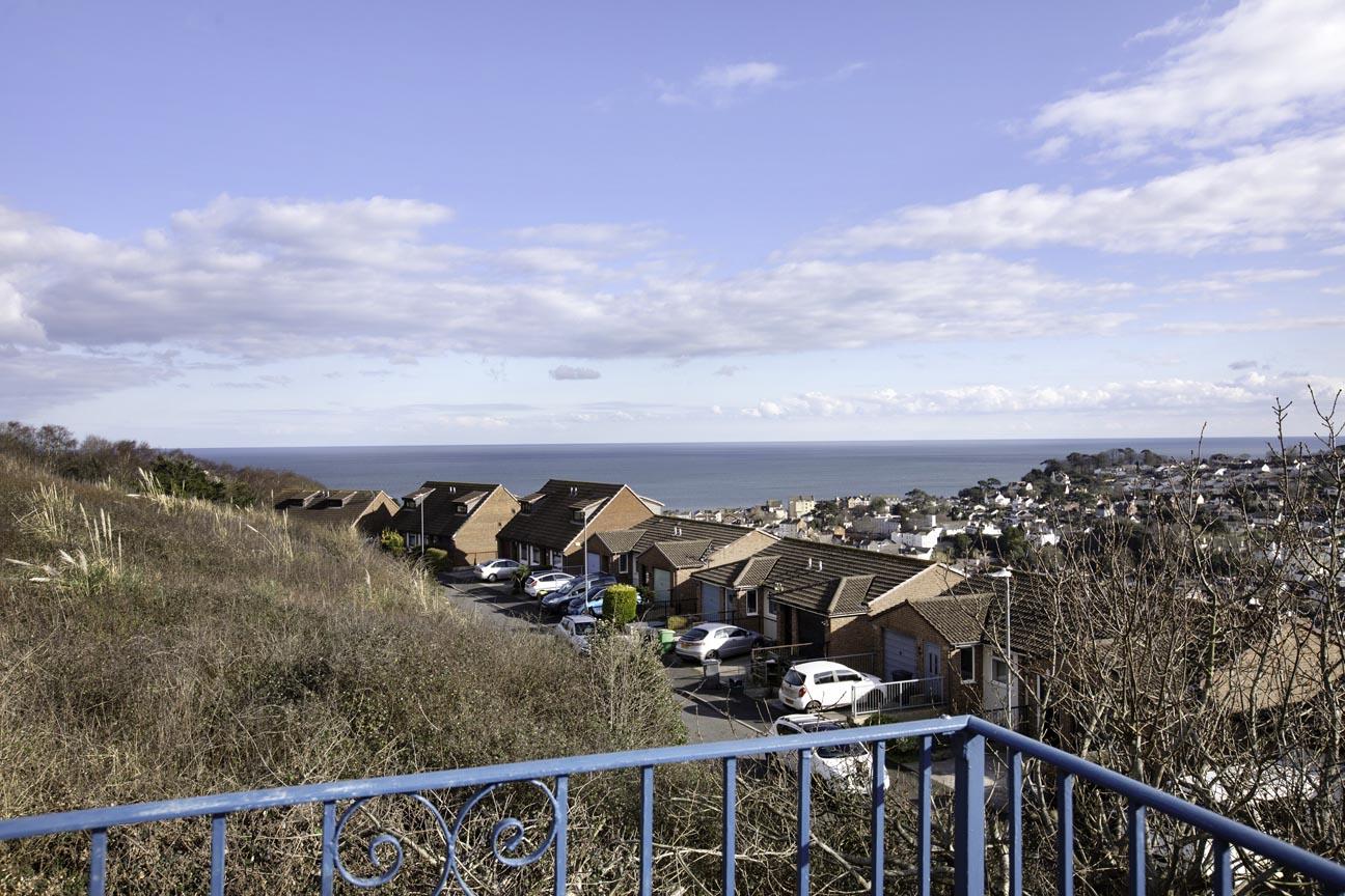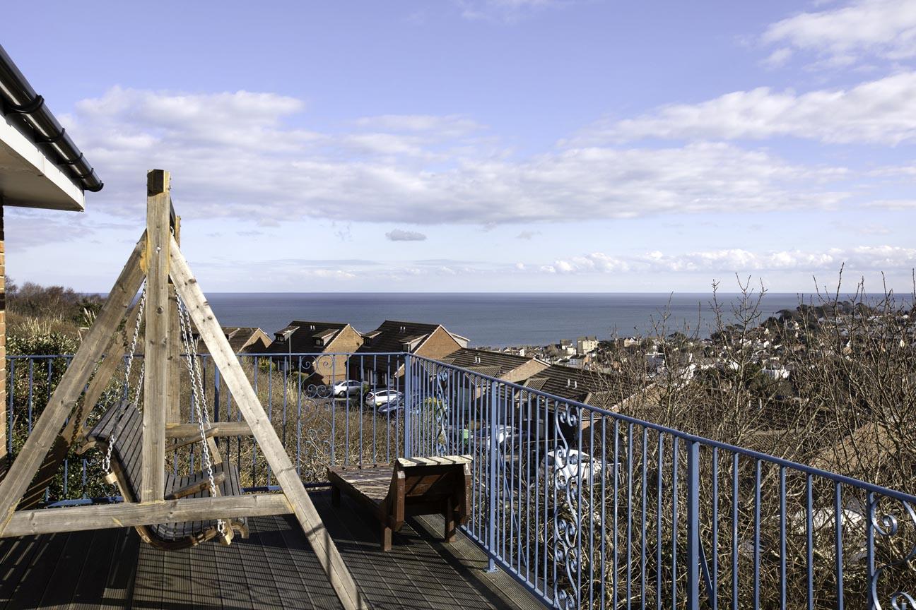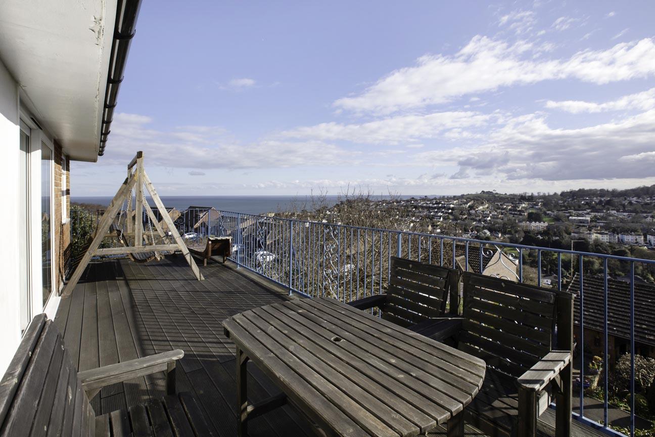 BALCONY: A large balcony with stunning 180-degree views over Dawlish, out to sea and over the Luscombe Estate. The balcony has metal railings and a southerly aspect.