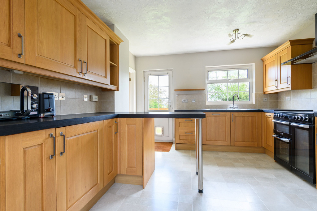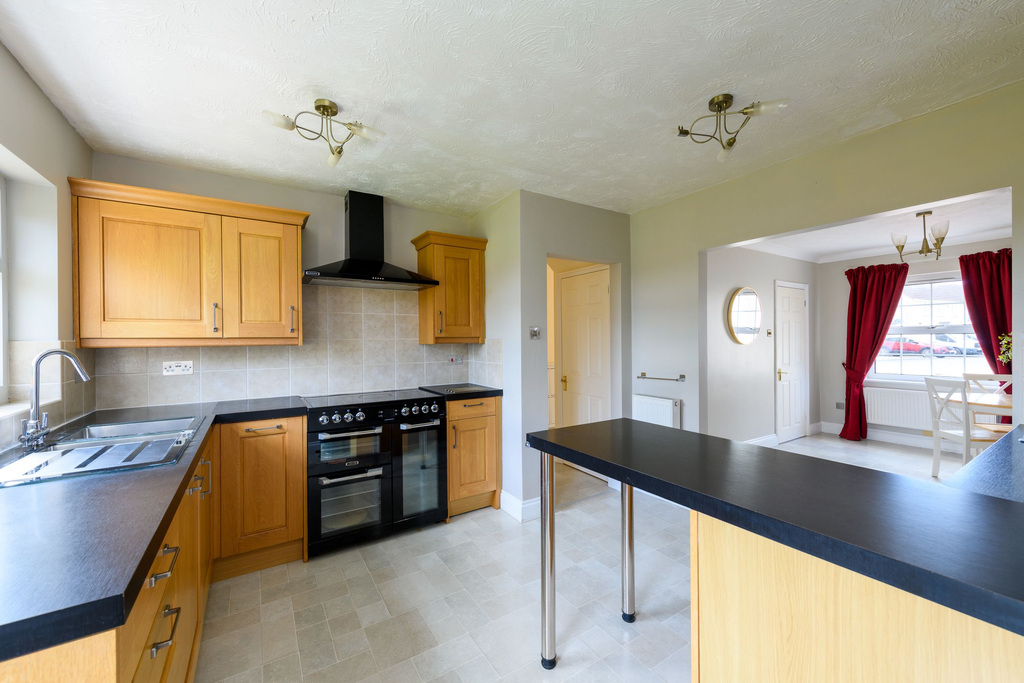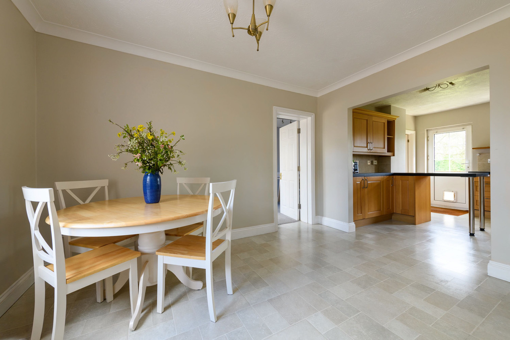 - Dining room opening into an updated kitchen with oak fronted units, integrated appliances and space for a range cooker