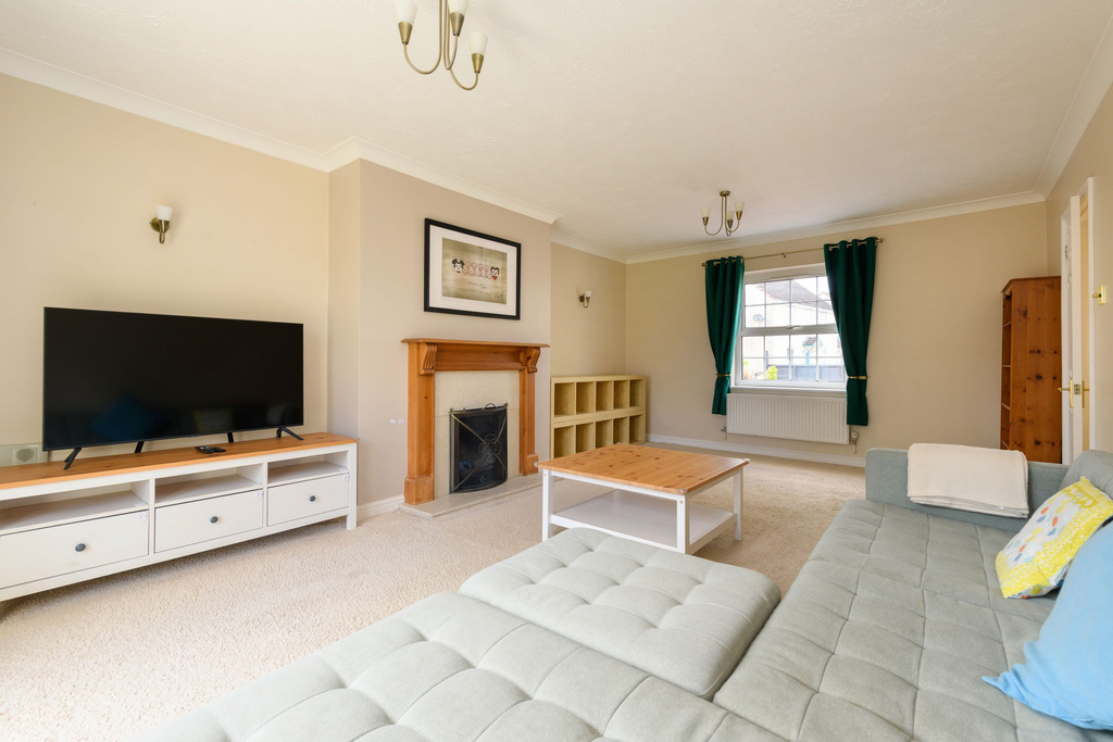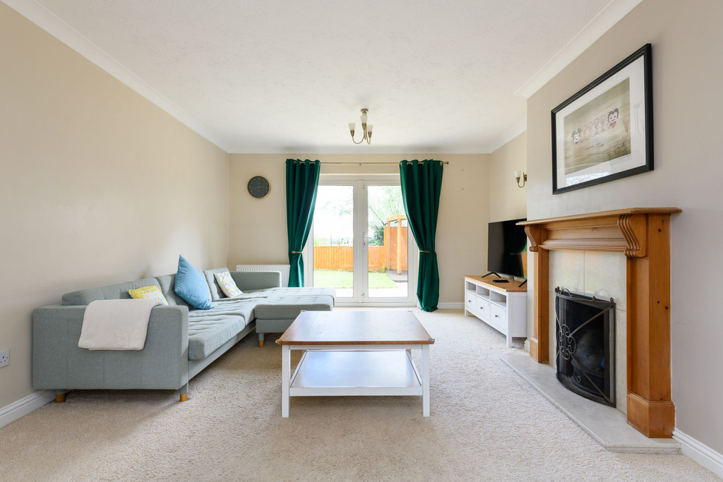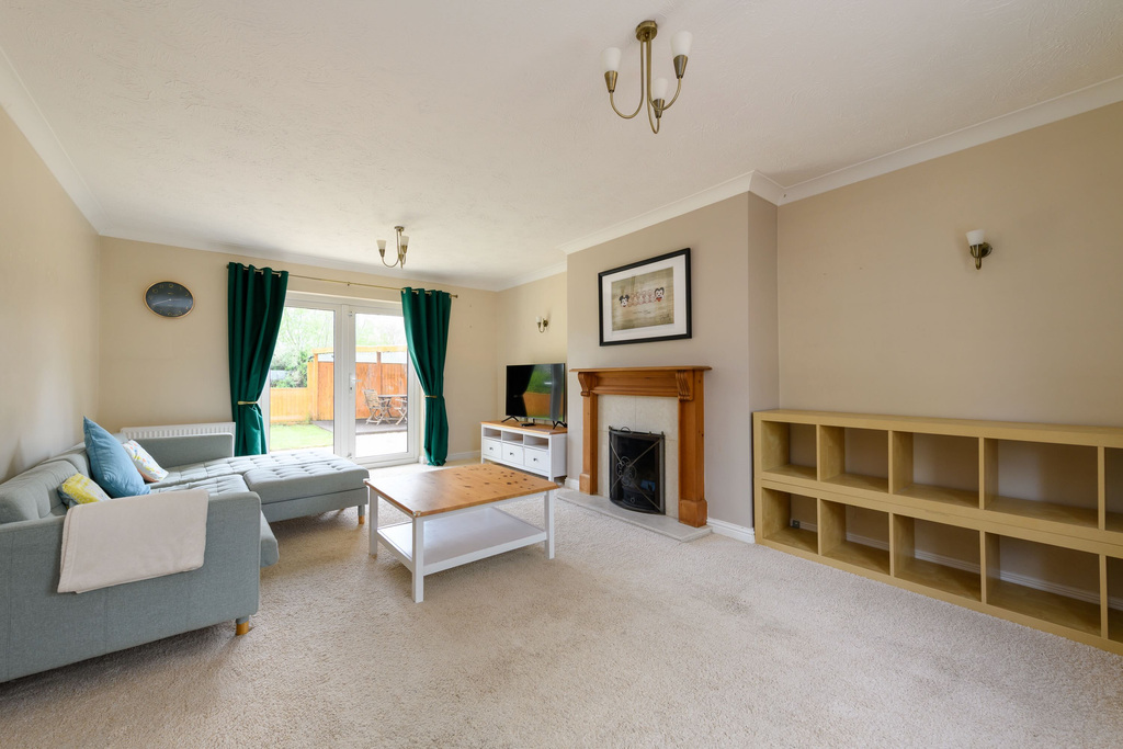 - Sitting room with feature open fireplace and patio doors opening onto the rear garden