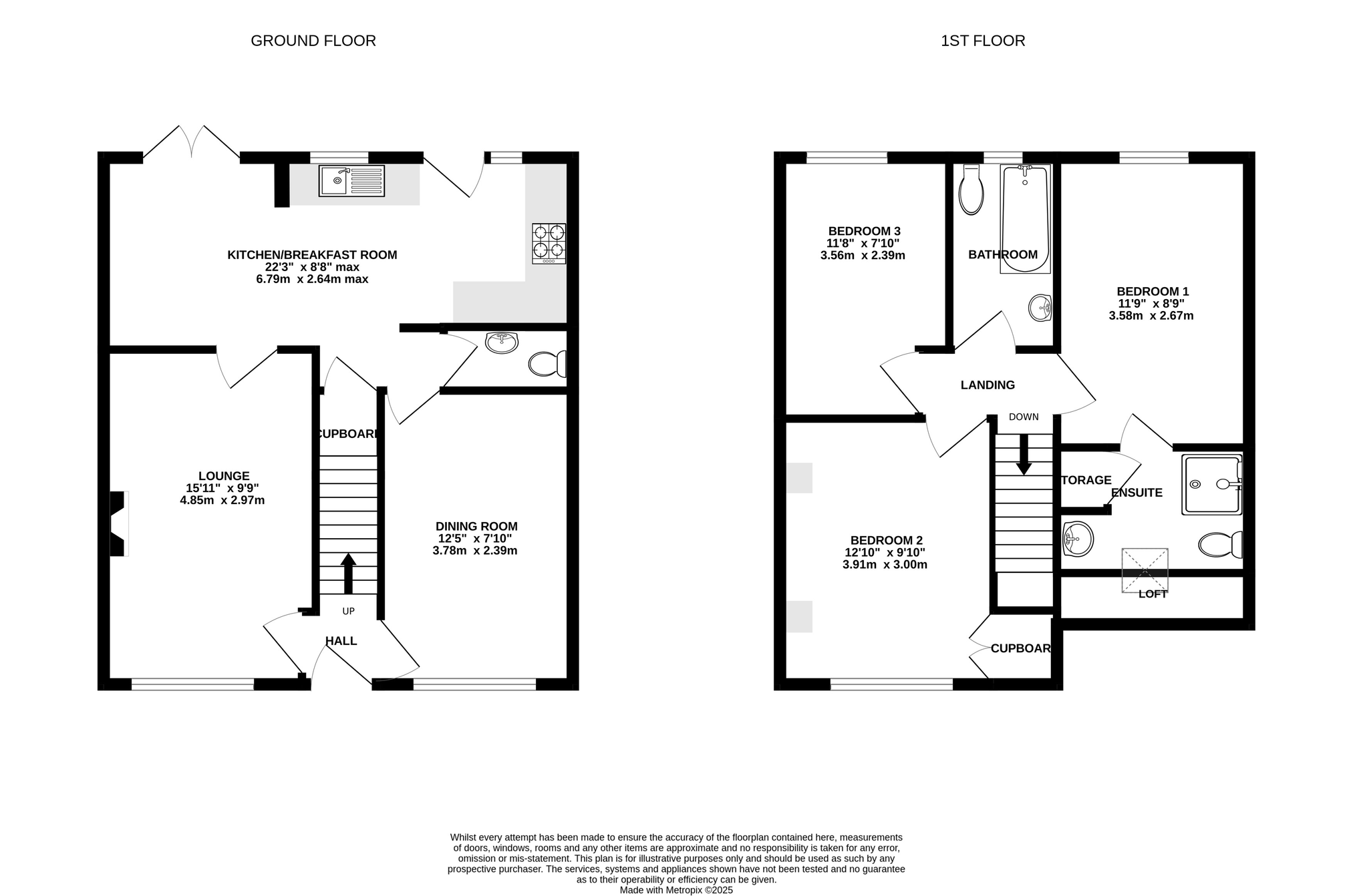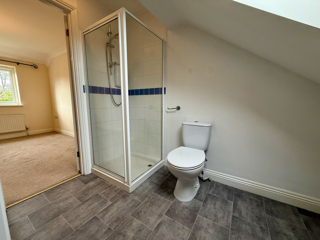 - Three first-floor bedrooms, including master with ensuite shower and built-in airing cupboard.