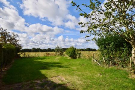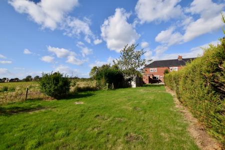OUTSIDE The front garden is laid to lawn with a pathway leading to the front door. The rear garden is large and faces south with views over fields. It is laid to lawn with two patio areas and a timber garden shed.