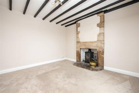 As you enter, the property opens into a spacious hallway which lends itself to coat and shoe storage. On the left of the hallway is the dining room measuring 13’ x 9’9’’ complete with a wood burner and stone fireplace. From the dining room there is access through to the smartly presented kitchen which comprises of fitted wall and base units, electric oven and induction hob, and space for further freestanding appliances. The kitchen offers a lovely view across the rear garden and enjoys plenty of light throughout the day. On the opposite side of the house, the cosy and warm living room can be found, aided by an impressive log burning stove. This forms the heart of the home and is a very versatile space for which to relax or host.