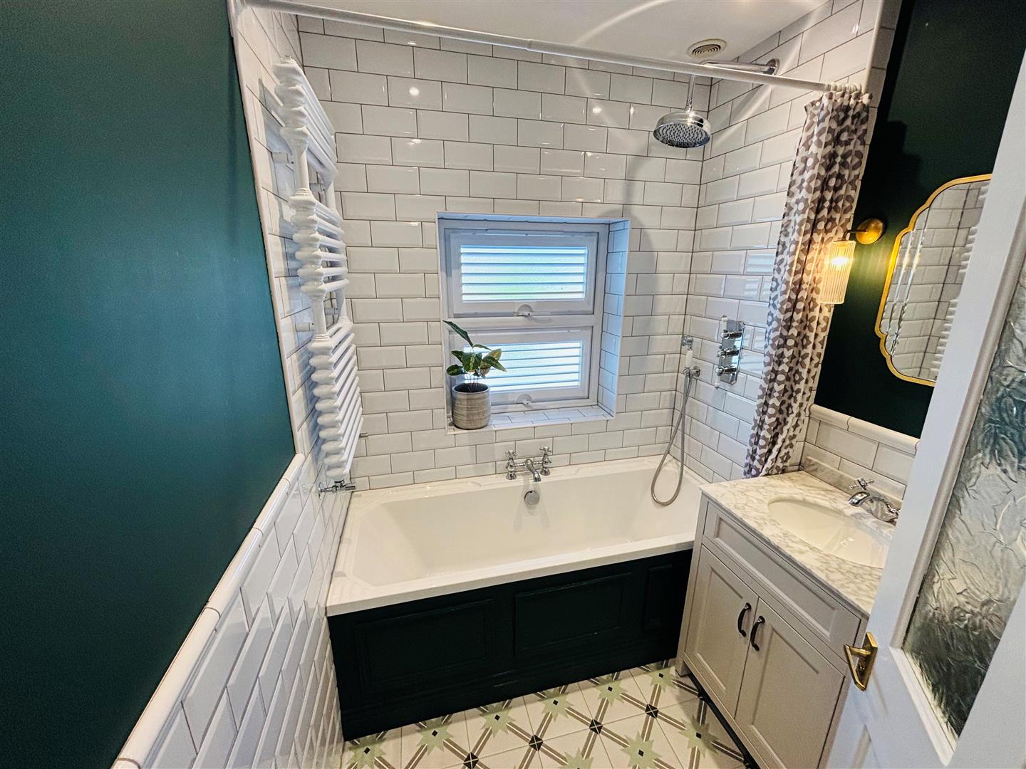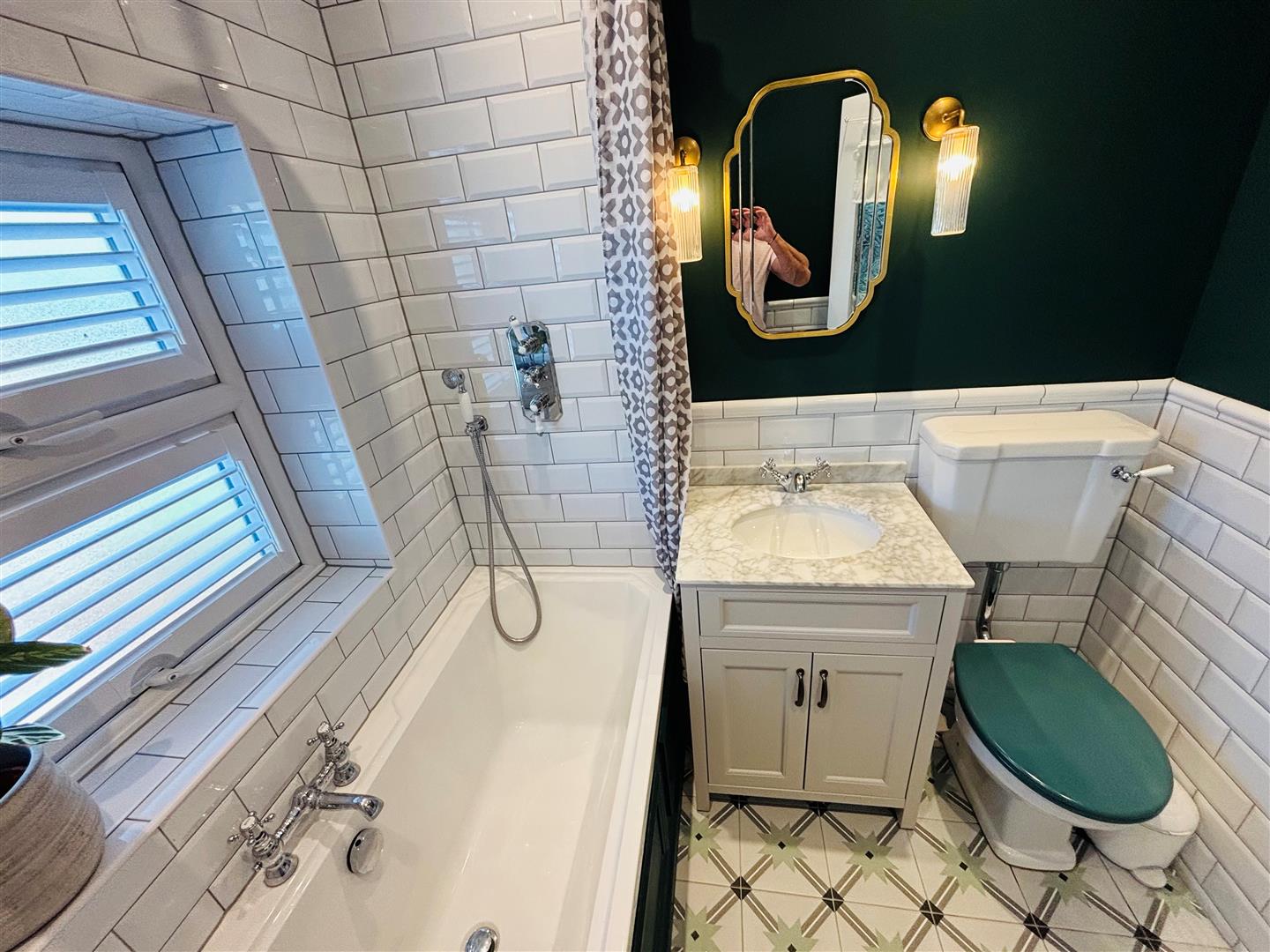 Family Bathroom - Obscure double glazed window to front. Comprising a low level W.C, pedestal wash hand basin, extractor fan, heated towel rail, tiled walls.