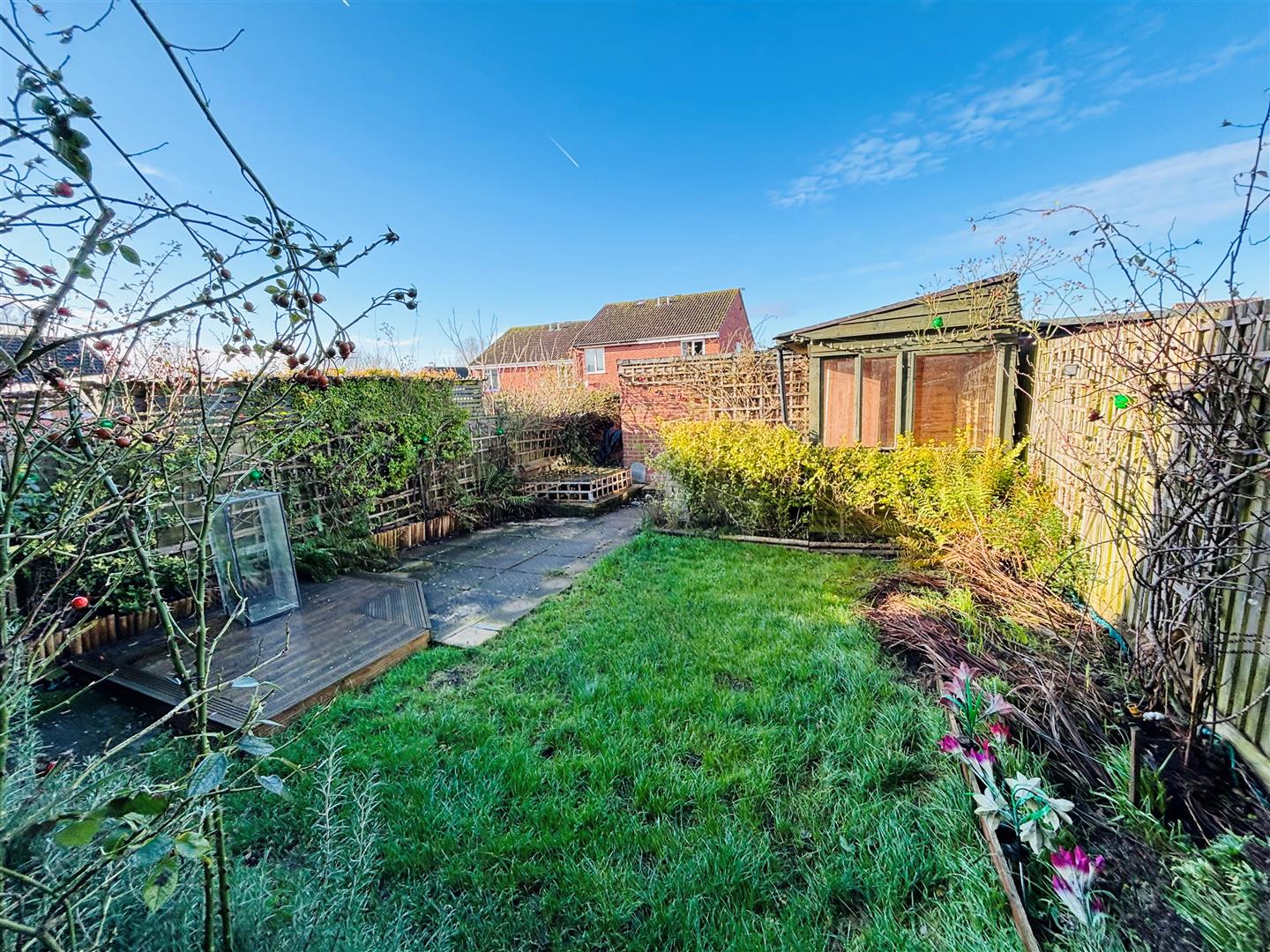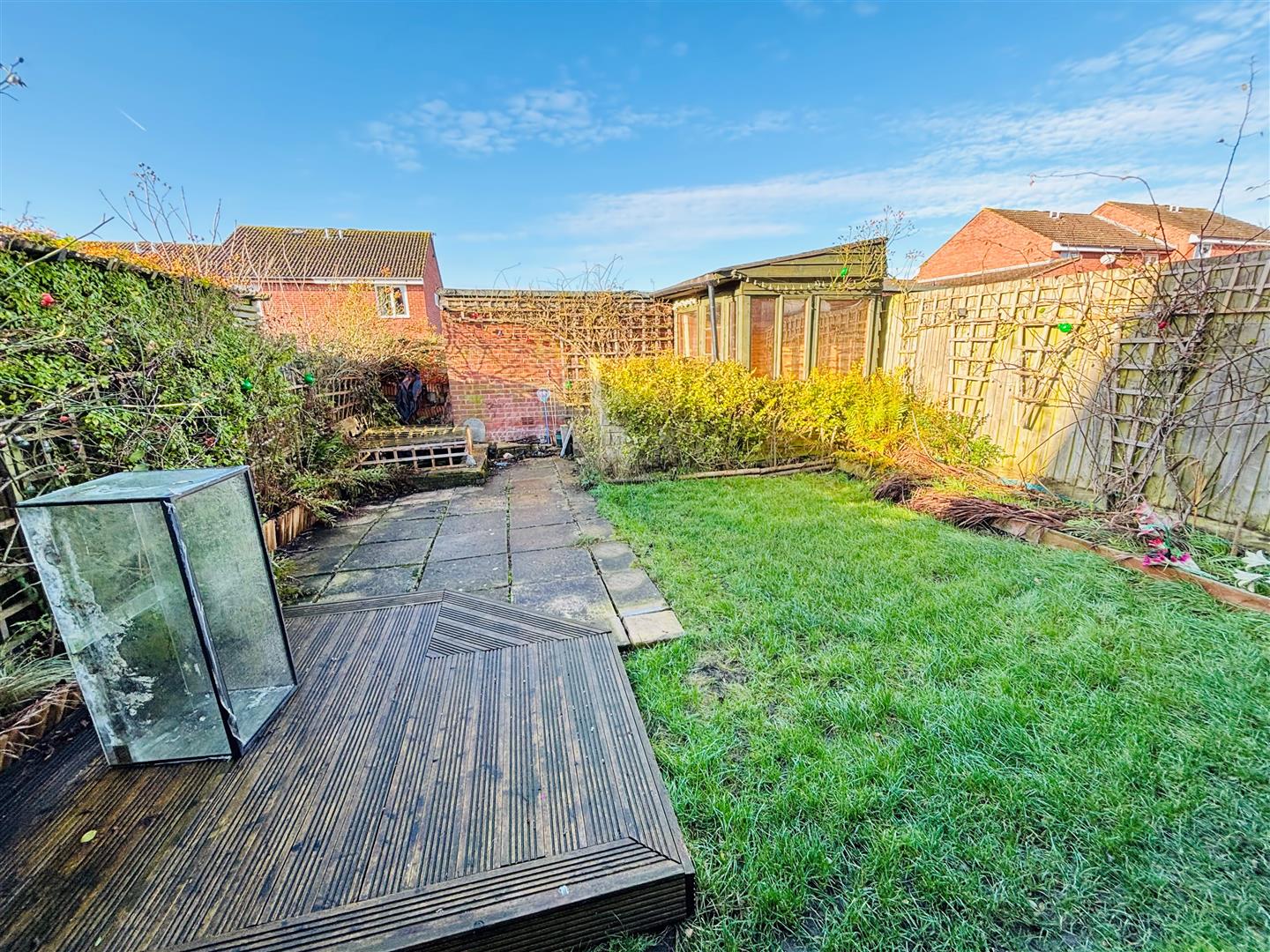 Rear Garden - Enclosed rear garden which is laid to lawn with a decked area and a paved patio, shrub borders, timber garden store.