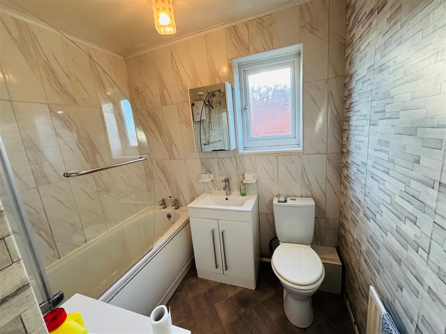 Bathroom - Obscure double glazed window. A suite comprising a panelled bath with a shower over and a glazed screen, low level W.C, wash hand basin with a cupboard below, tiled surrounds, radiator.