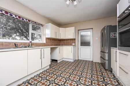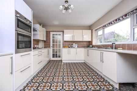 Kitchen/Diner - 11' 3'' x 14' 6'' (3.42m x 4.42m) - inset stainless steel sink unit, base and drawer units with worktop surfaces over, wall units, integrated five ring gas hob and double oven, plumbing for washing machine, Worcester central heating boiler, double glazed window