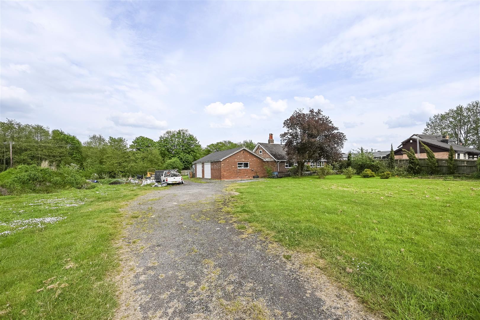 Berkeley Shaw Real Estate are pleased to offer for sale a detached bungalow situated within large grounds of approximately 1 acre, in a Green Belt location in rural Melling. The site offers excellent potential for the new owners and is currently occupied by a spacious detached bungalow with two double bedrooms and large double garage. The property is served by LPG gas, has a private drainage system with underground septic tank and is being sold without an ongoing chain. The property comprises porch, entrance hall, spacious living room overlooking the rear and leading to a large conservatory with doors to rear. There is a kitchen/diner with fitted units including oven and hob, two double bedrooms and a shower room with electric shower. There is also a utility area and double garage with workshop to the side. A private gate leads to the off road parking and gardens which surround the property and have Cuncough Brook running along much of it's perimeter, behind which is woodland and Mossock Hall Golf Club beyond that.