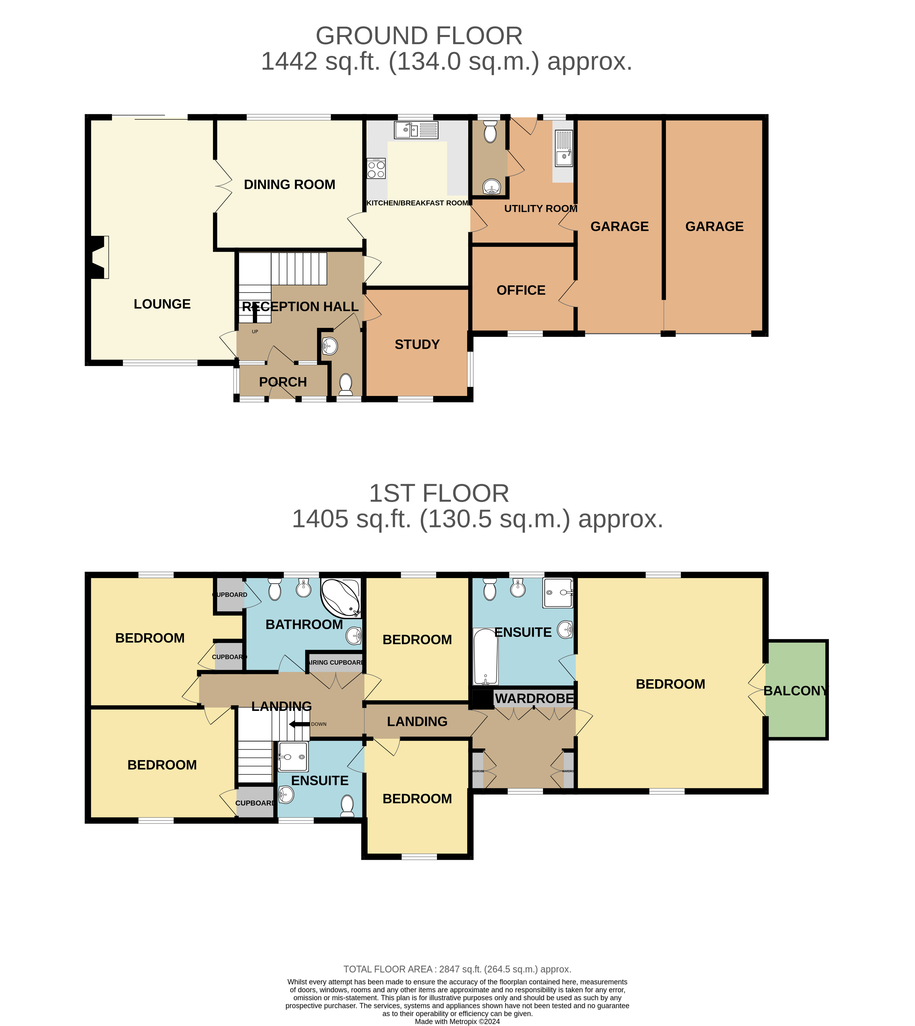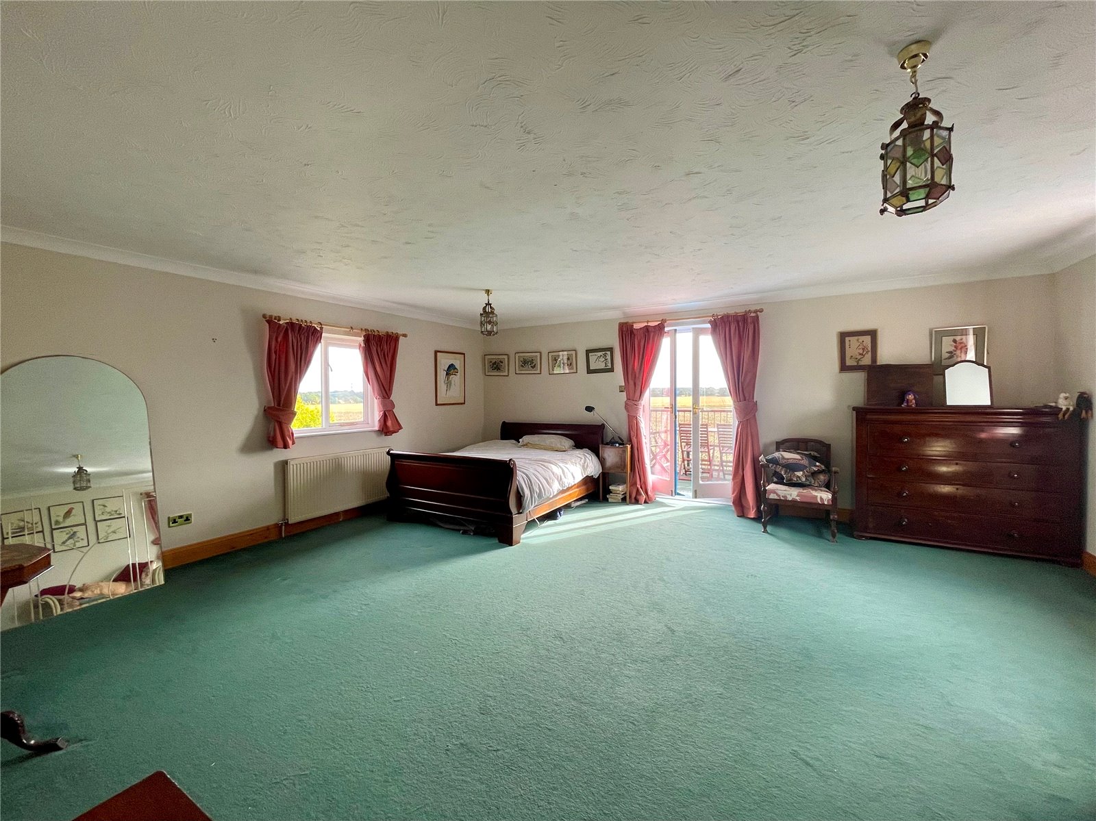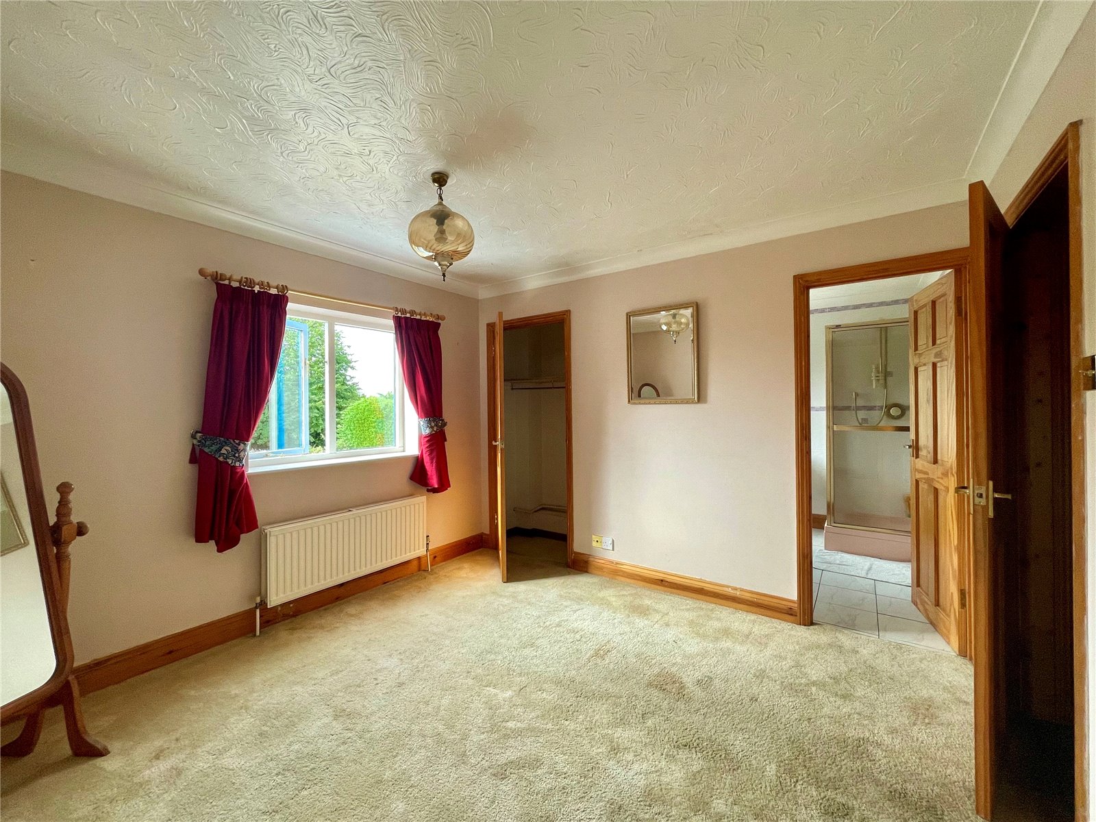 The internal layout includes two well-proportioned reception rooms along with kitchen breakfast room and study, all off a central initial reception hall. Upstairs, an undeniably large master bedroom has an equally roomy en suite bathroom with shower along with a balcony taking full advantage of the southerly views. It is preceded by a fitted out Dressing Room complete with floor to ceiling wardrobes. Each of the remaining four bedrooms are all double in nature with Bedroom 2 being en suite with shower room.