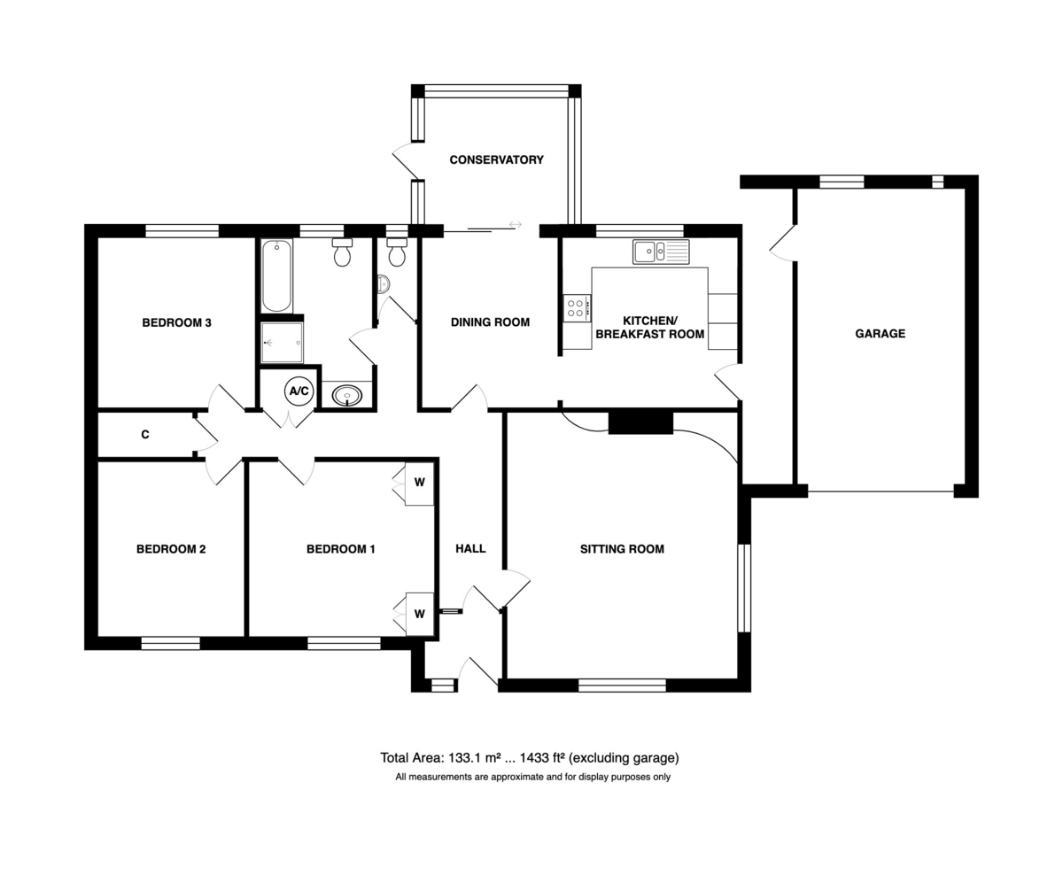 The property has a spacious and well-considered layout, ideal for relaxed living and entertaining. Highlights include a generous sitting room, a separate dining room leading into a sunny conservatory, and a well-proportioned kitchen/breakfast room. All three bedrooms are comfortably sized doubles, complemented by a good-sized family bathroom and a separate WC.