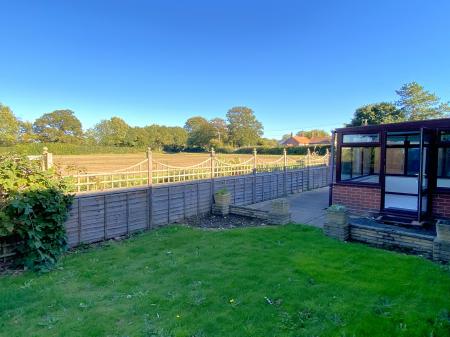 The small rear garden is a great outside space, bordering and enjoying excellent views across farmland of the Stody Estate, The garden enjoys a concreted patio around the conservatory, providing seating area options, along with a lawned garden, with established planting. Timber garden shed.
