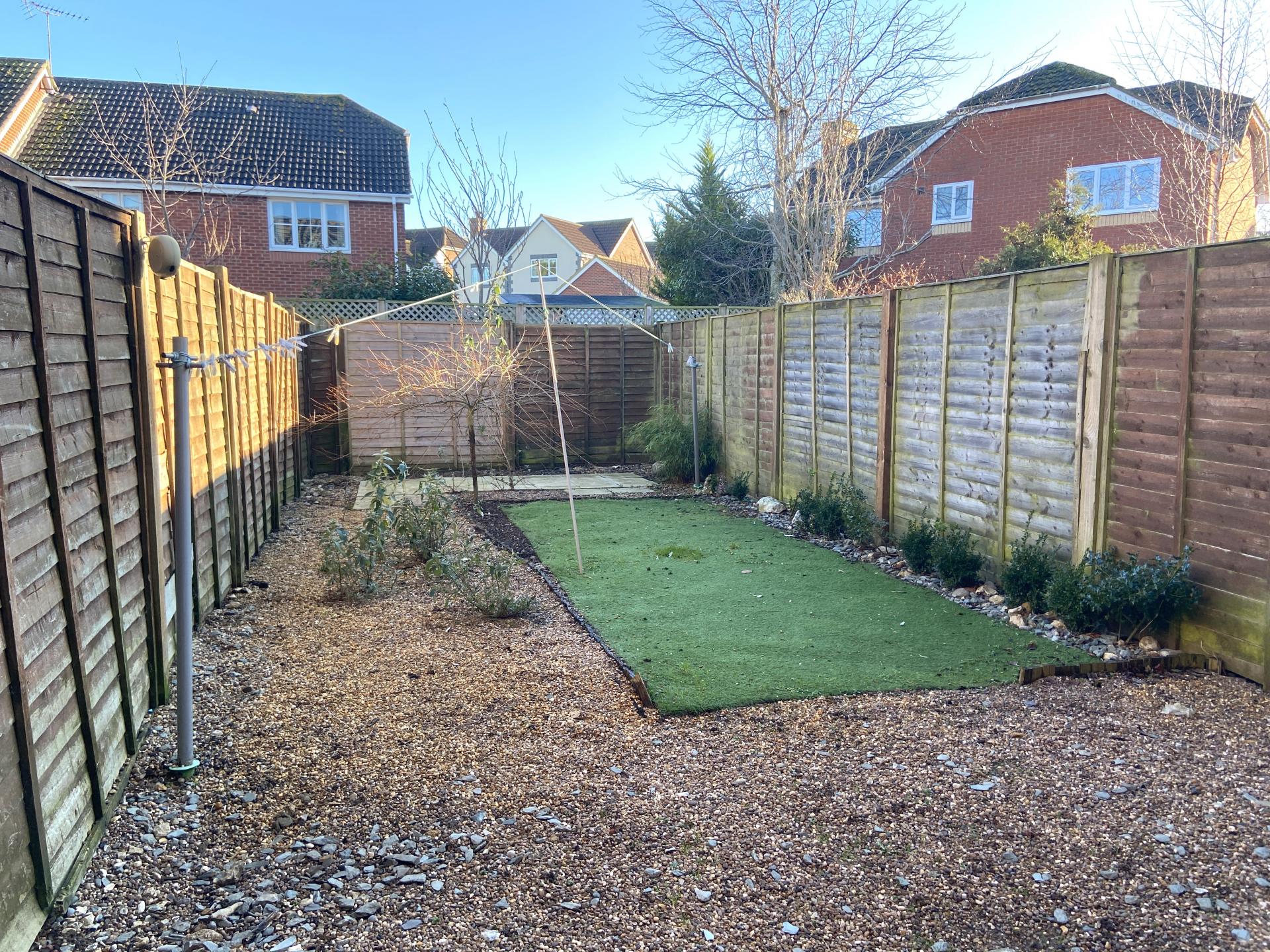 Outside The property is approached via a paved path giving access to this and the neighbouring home, and extends down the side of the house to the rear garden gate. The front garden of the property is mainly laid to lawn with an attractive conifer in a central position and a small paved and shingle area immediately to the to the front of the house. The rear garden faces east and is enclosed by fencing with a tall gate allowing access to the side path. Immediately to the rear of the property is a small paved patio leading onto shingle beds, of which is an area of artificial grass edged by a recently planted hedge. Towards the rear of the garden is a further paved seating area with a small acer and a small bamboo.