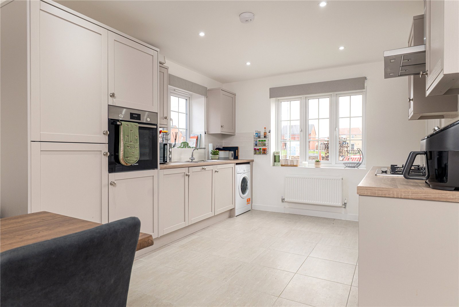 Situated on a generous corner plot with open views across a green to the front, this well-presented three-bedroom detach...