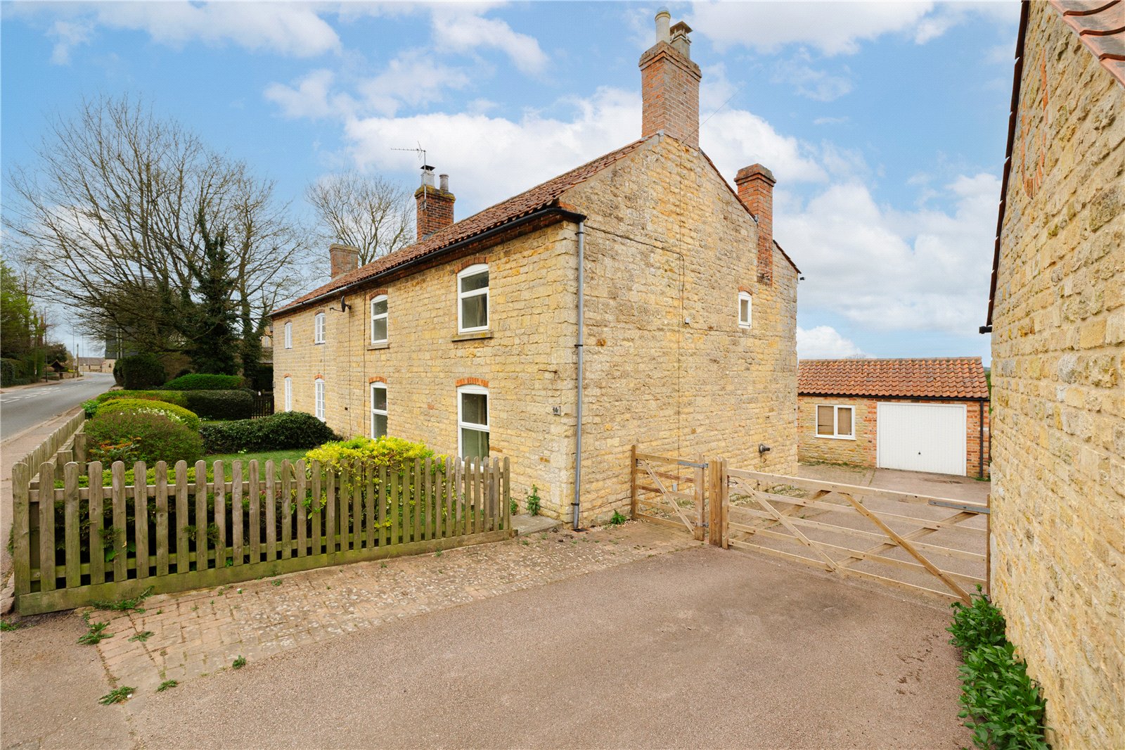Located in the heart of Waltham on the Wolds village is this spacious Ironstone cottage offered to the market with no chain and having been fully redecorated throughout. The property provides ready to move into accommodation yet provides further scope for cosmetic enhancement. The accommodation in brief comprises a welcoming entrance hallway, two spacious reception rooms both with open fireplaces and exposed ceiling beams, a fitted kitchen and spacious cloaks WC/utility. On the first floor a central galleried landing leads to three well-proportioned bedrooms and a bathroom with a white suite. From the first floor there are fabulous far reaching views across rolling countryside. Outside there is a generous gated driveway and a detached garage and adjoining workshop providing good versatility in its use. The garden is subdivided in to a hard landscaped split-level patio and a rear lawn. A real feature of the property is an elevated timber deck within the garden which takes full advantage of the far reaching countryside views. The property is offered to the market with no chain and early viewing is strongly recommended to appreciate the spacious accommodation and outlook the property enjoys.