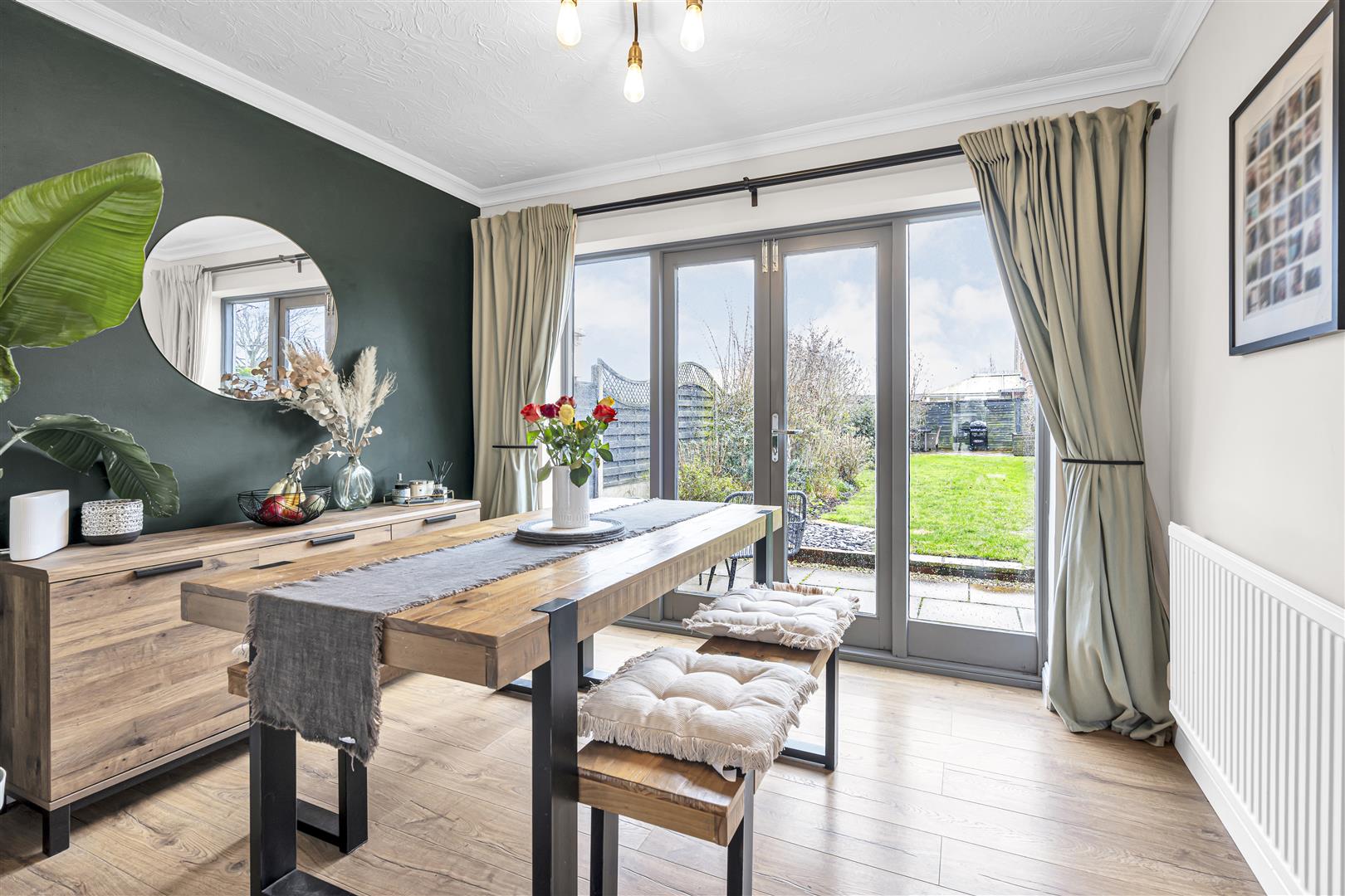 The property is entered via a welcoming hallway leading to a spacious sitting room, providing a comfortable and inviting space for everyday living. A separate dining room offers an ideal setting for family meals and entertaining, while the well-appointed kitchen is both stylish and practical, perfectly suited to modern living.