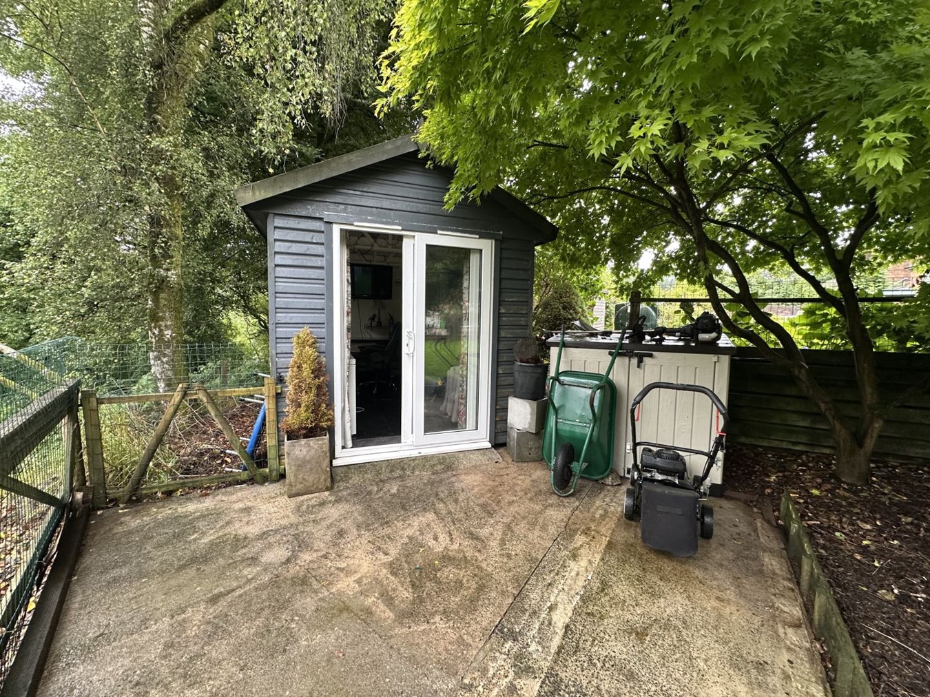 Tucked away in a peaceful spot with lovely woodland views, this great, semi-detached house is an ideal family home. On the ground floor, the spacious entrance hall with tiled flooring leads into a bright and airy living/dining room, a wonderful space for relaxing or hosting friends and family, with patio doors opening directly onto the garden. There’s also a home office, ideal for remote working and a kitchen with a range of wall and base units and an integrated oven and hob. Off the kitchen, a rear hall provides access to a useful utility area and WC. Upstairs, there are three bedrooms, all benefitting from built-in storage, along with a modern family bathroom. Outside, the property is approached via a shared private road leading to a communal parking area. The rear garden is a real highlight, backing onto woodland, it offers a private and tranquil retreat. Designed for both relaxation and entertaining, it features paved patio areas ideal for al fresco dining, a lawn, shrub borders, a pergola, garden store and even a home office/garden room, perfect for flexible working or hobbies.