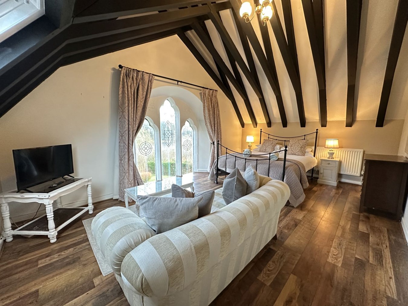 - three bed converted chapel with two bed lodge