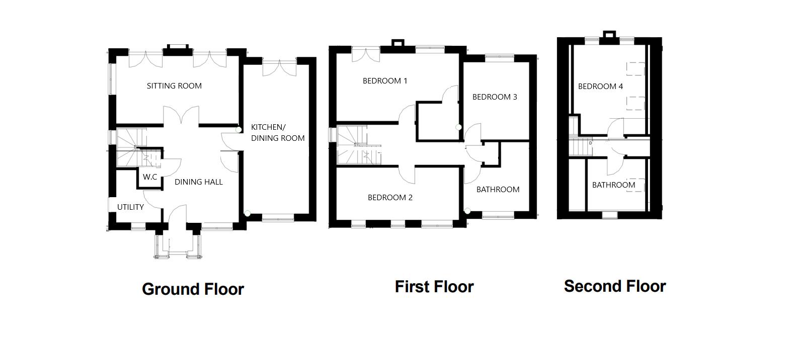 Bedroom Two - Three windows overlooking the front. Radiator. Possibility of dividing into two rooms if required.