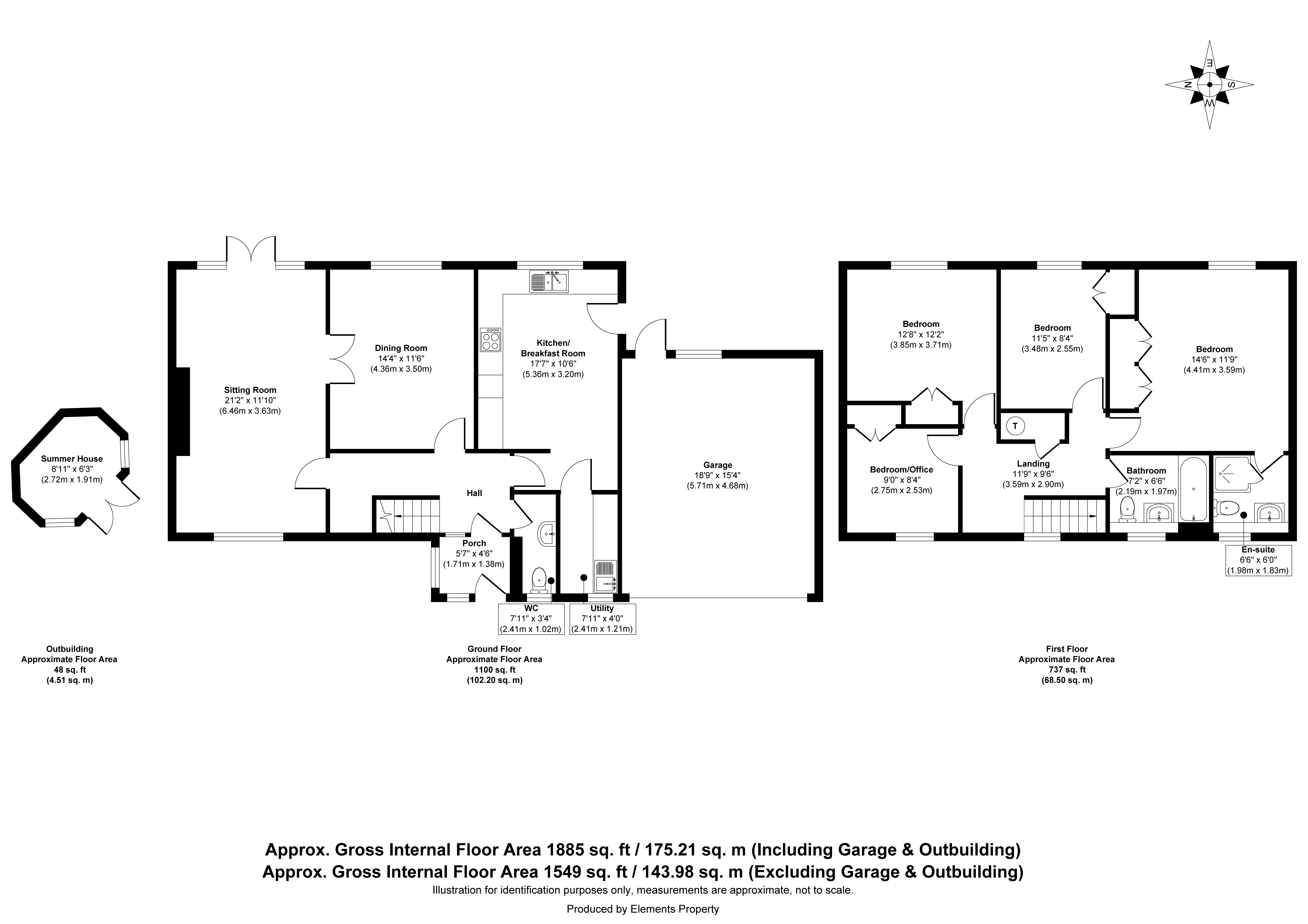 The front of the property is mainly laid to lawn with a is a private driveway that provides parking for two vehicles and leads to a double garage, complete with electric up-and-over doors, power, and lighting. A wooden side gate opens into the well-kept, rear garden. The garden is mainly laid to lawn and includes a generous paved patio area and a summerhouse. Established borders are filled with an assortment of shrubs and trees.