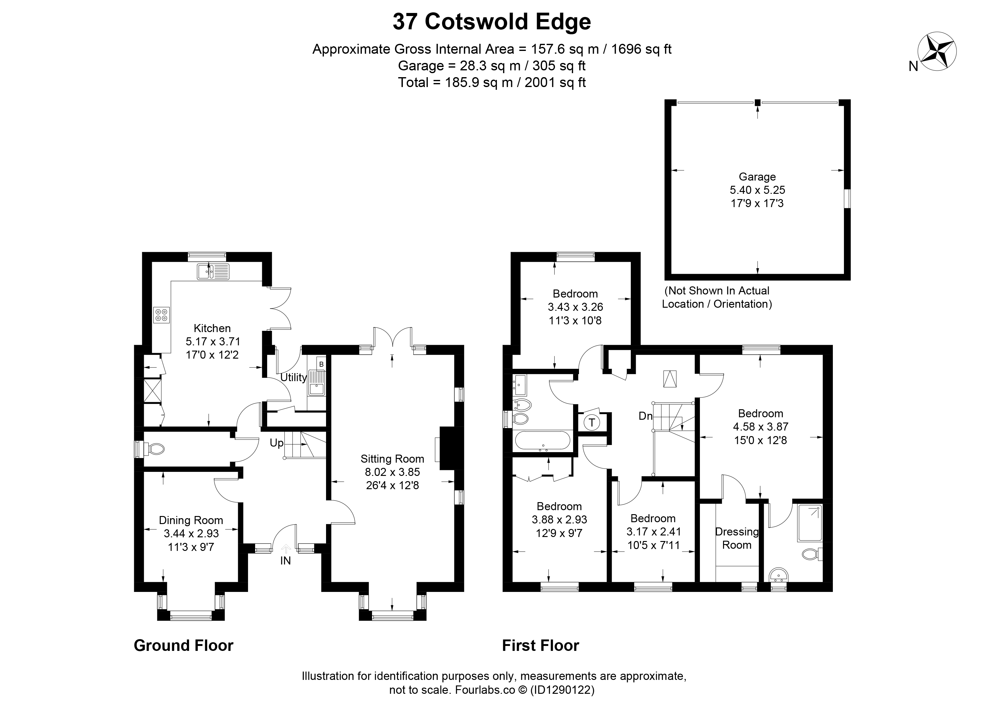 The formal dining room, also featuring a box bay window, offers versatility and could equally be used as a snug or family room. Completing the ground floor is a well-appointed kitchen/breakfast room, providing ample space for a dining table, French doors leading to the garden, and access to a practical utility room.