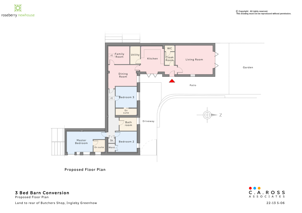 The interior will be approximately 1669 sq ft comprising; entrance hall, living room, kitchen with utility, cloakroom, sitting room and dining room, two bedrooms en suite, a third bedroom and family bathroom.