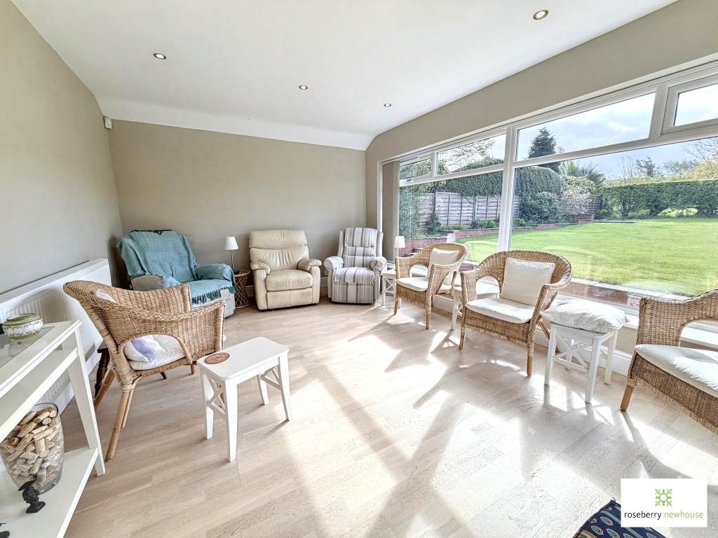 A welcoming entrance porch opens into the central hallway, leading through to a spacious living room where large windows frame the garden outlook and natural light pours in. From here, the adjoining garden room provides a peaceful retreat and a wonderful place to enjoy the changing seasons, with uninterrupted views across the grounds.