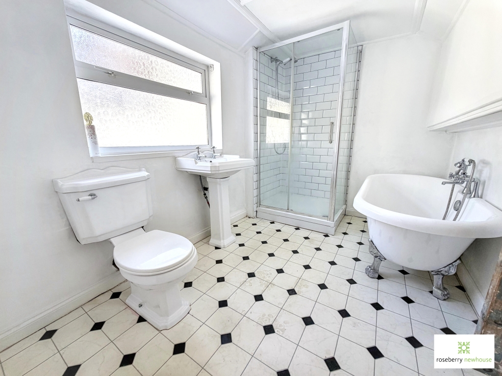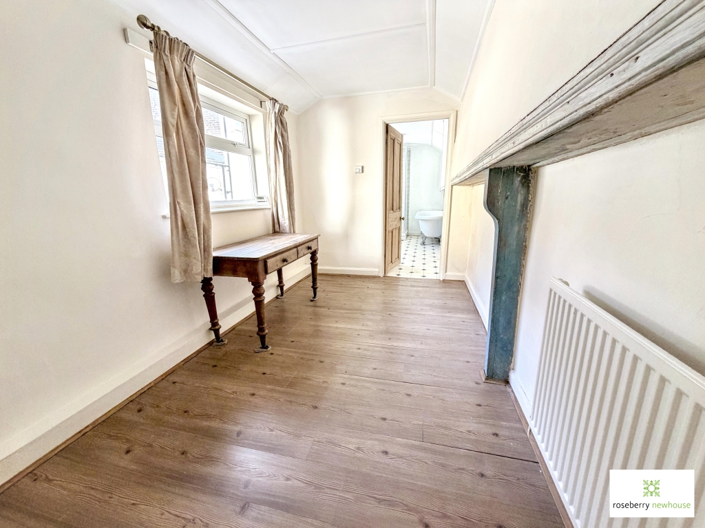 To the first floor, there are two well-proportioned bedrooms together with a study area that leads through to a generous bathroom, fitted with a freestanding bath and separate shower, a fitting complement to the cottage’s character.