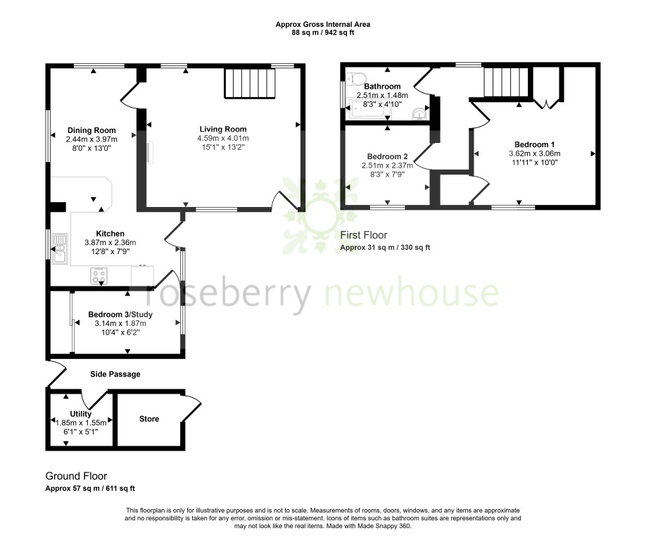 Upstairs, there are two bedrooms on the first floor together with a family bathroom, all enjoying good natural light. The home benefits from gas central heating and double glazing.