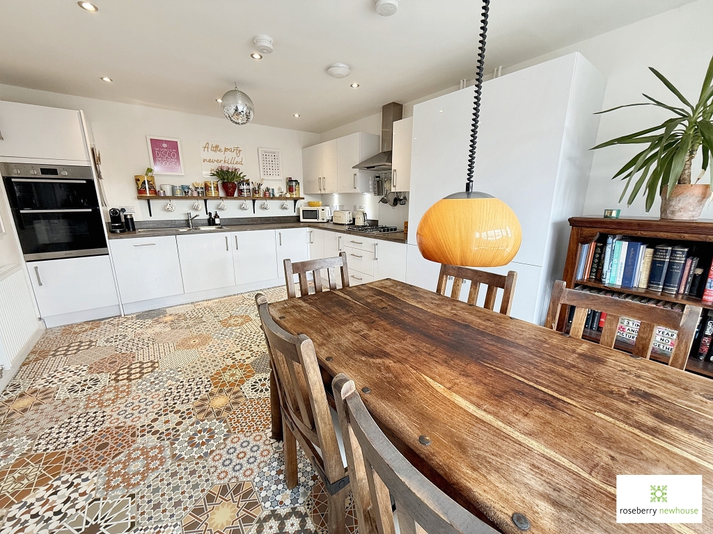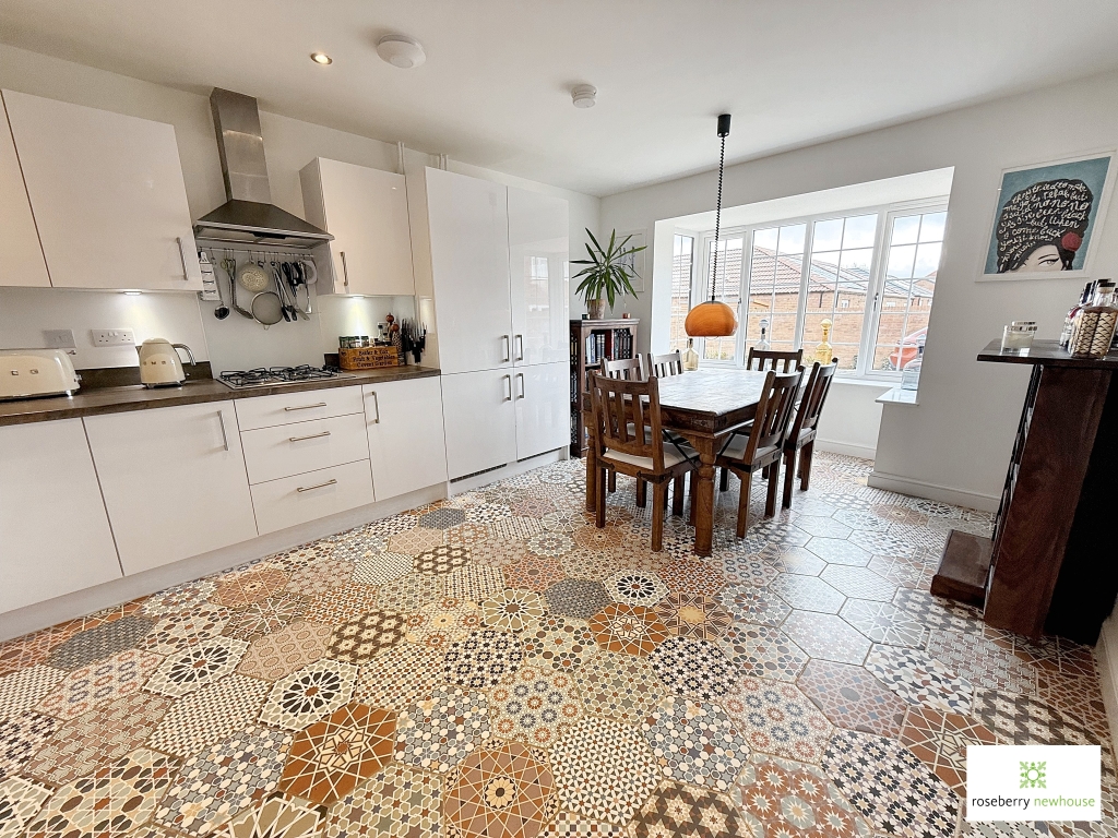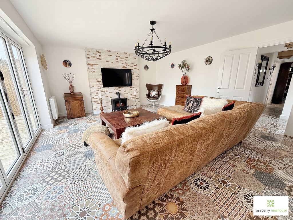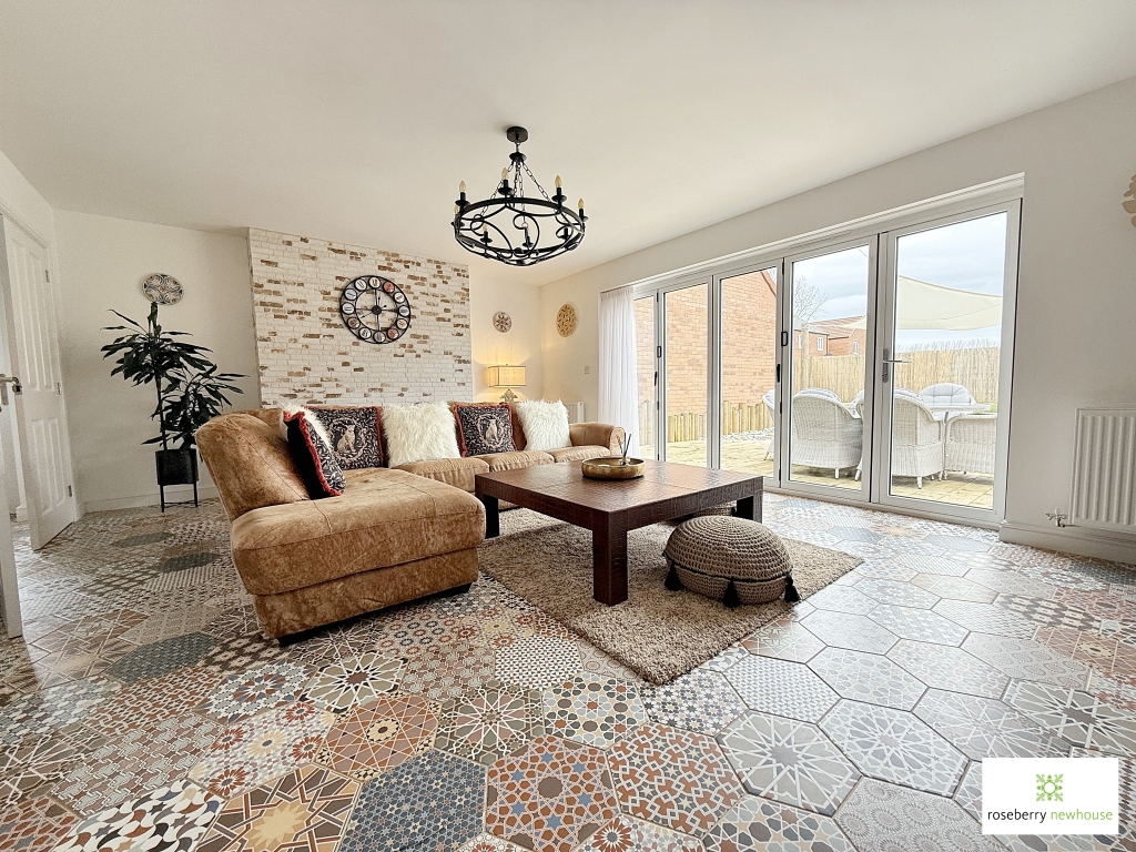 Landscaped gardens with bifolds from the living room. Modern kitchen diner with integrated appliances.