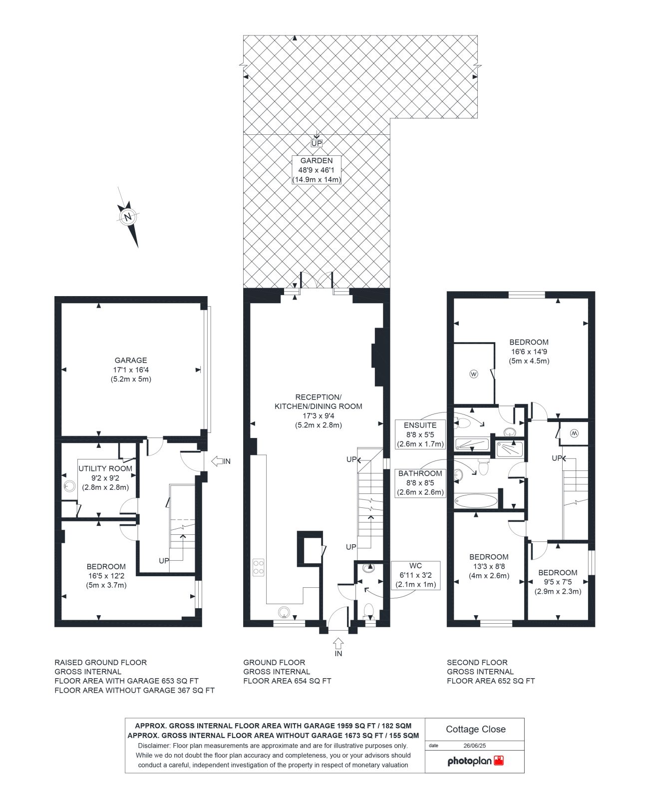 Floor 1:This floor boasts a fully fitted modern kitchen with double ovens and integrated appliances, opening into a bright open-plan living and dining area with a gas fireplace. This space flows seamlessly into a large L-shaped, south-facing garden featuring a recently added decking area, outside tap, and electrical sockets — perfect for entertaining or relaxing. A large storage cupboard and convenient WC complete the floor.