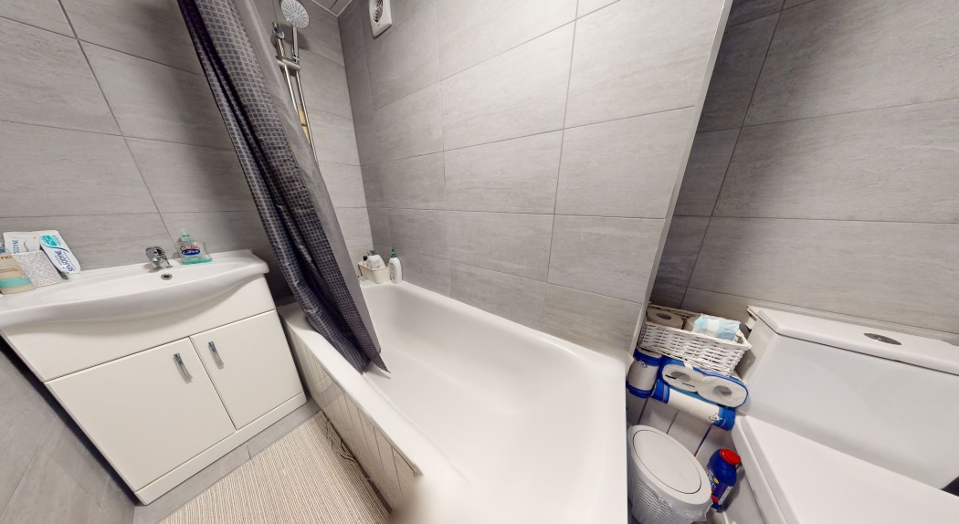 Well-Appointed Bathroom: The full bathroom features contemporary finishes and modern fixtures.