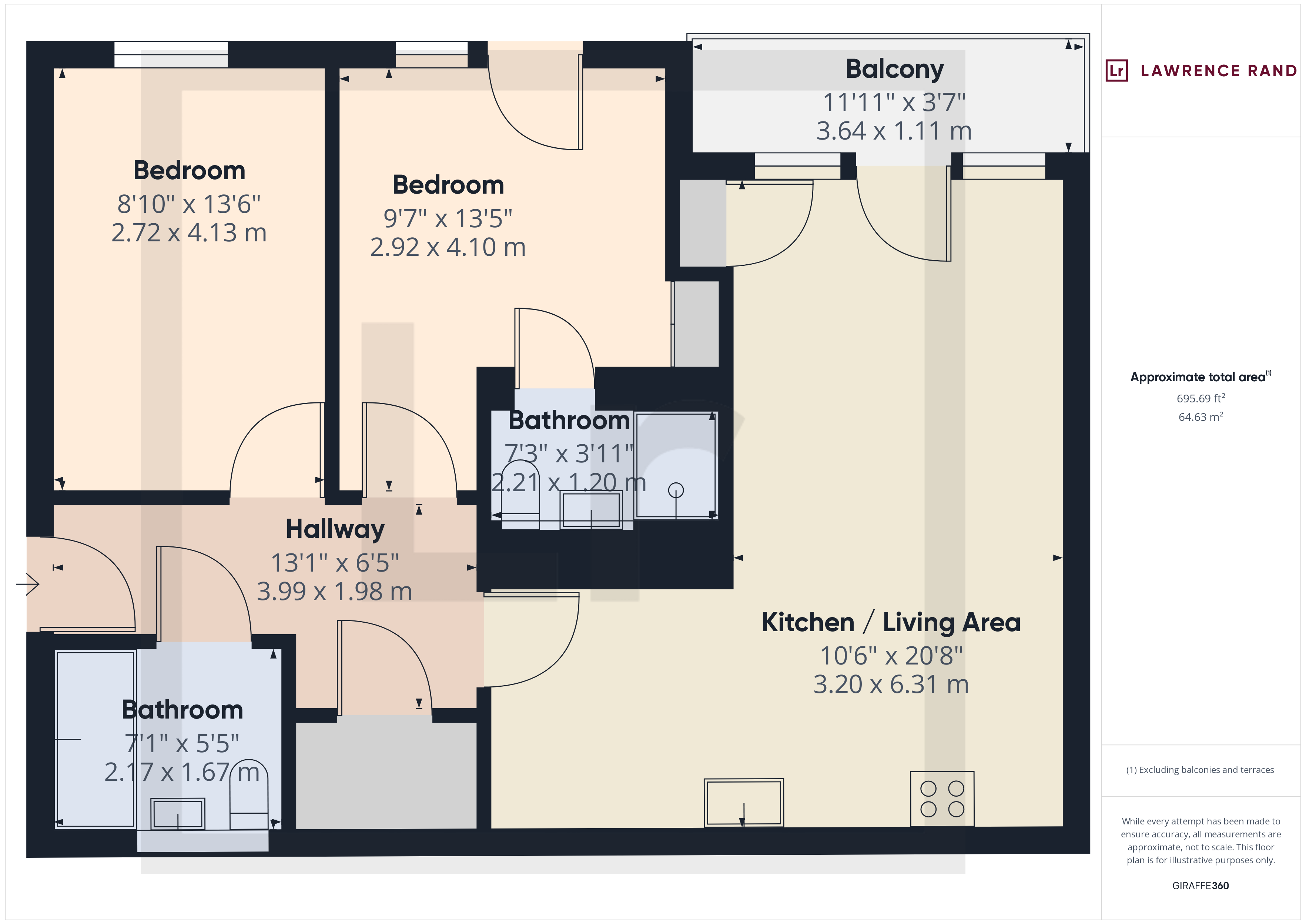 There is a secure entrance with entry-phone system that gives access into the well maintained communal area. The apartment has a generous hallway, with a large built-in storage cupboard - ideal for white goods. There is a living room with access to the balcony and this room is open-plan to the well-appointed kitchen with integrated appliances and space for a dining table. The principal bedroom benefits from fitted wardrobes and has a well-proportioned en-suite and completing the accommodation is the main bathroom and the second double bedroom.