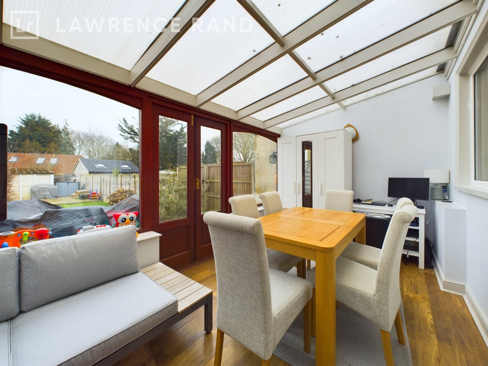 The ground floor encompasses a spacious living area, adorned with tasteful decor, that effortlessly leads into a bright conservatory. This versatile space is ideal for relaxing with a book or entertaining guests, offering panoramic views of the well-maintained garden, a serene oasis just beyond the glass panes.