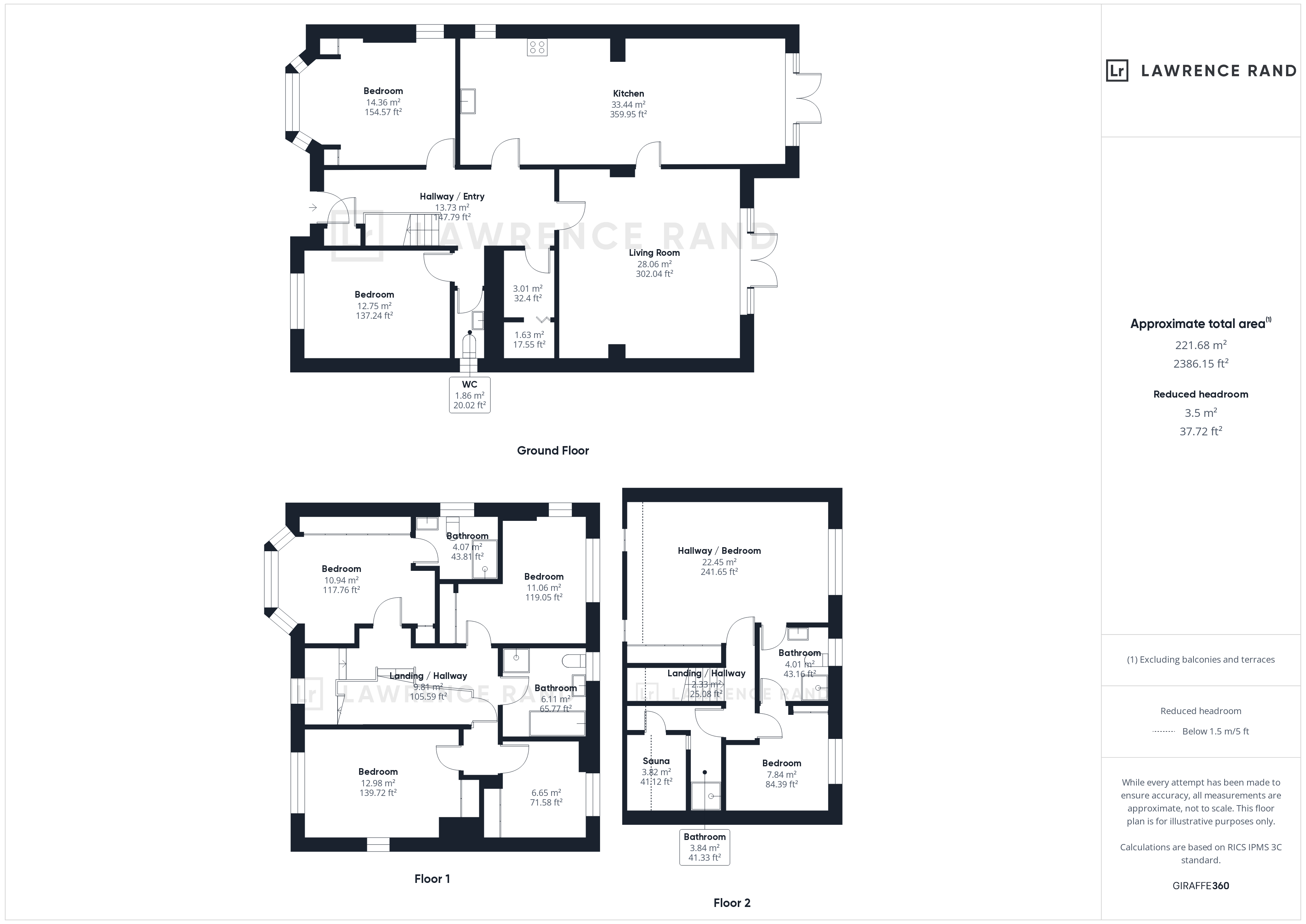 To the first floor are three comfortable double bedrooms. The master bedroom has the added benefit of an ensuite bathroom. There is also a fresh family bathroom completing the first floor. To the second floor are two further guest bedrooms with a Jack and Jill bathroom and a sauna room.