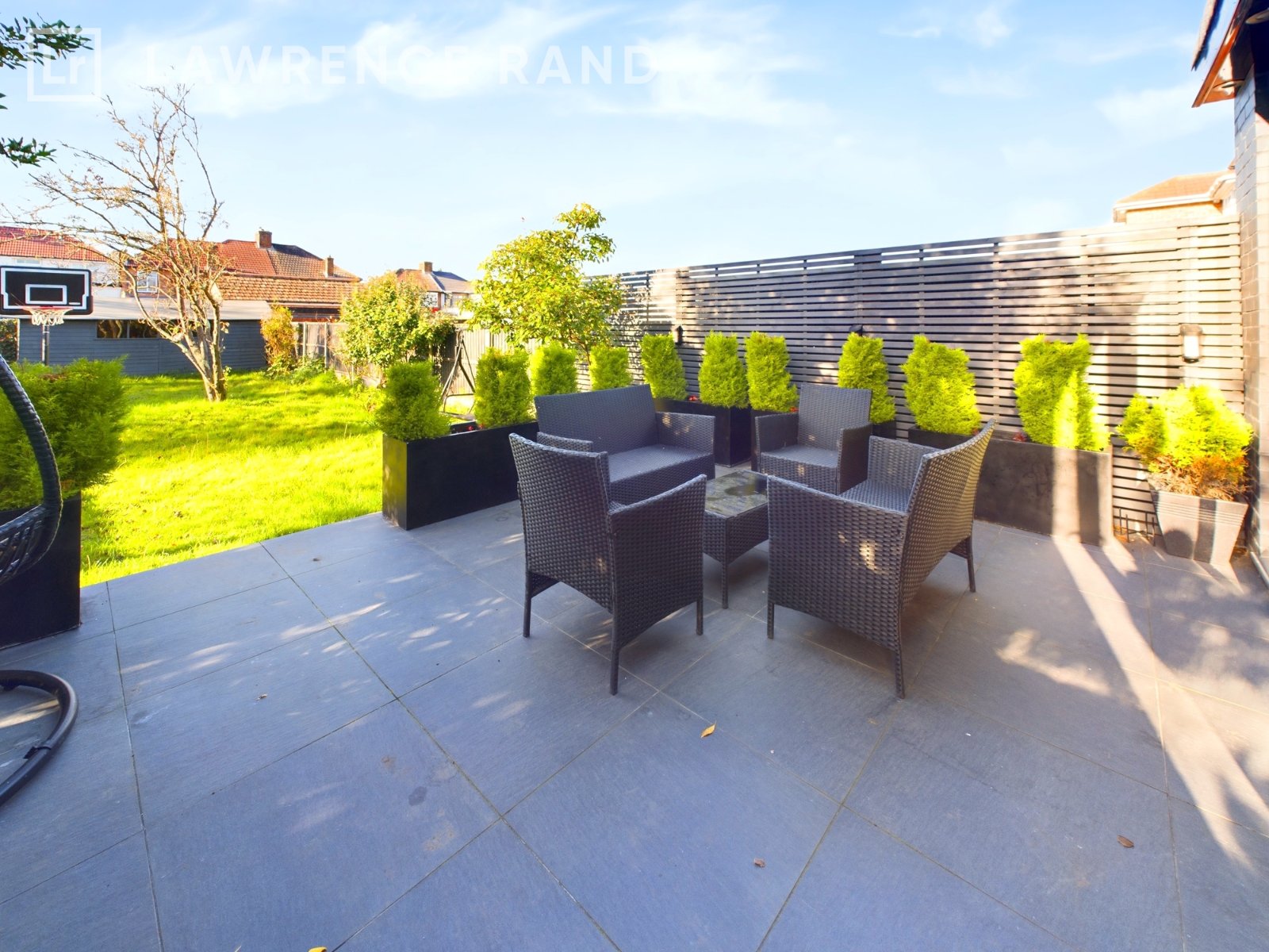 Outside the SW facing rear garden is part paved with steps leading down to a lawned area and a large wooden storage shed to the rear. The front of the property is neatly paved provided off street parking for two large cars.