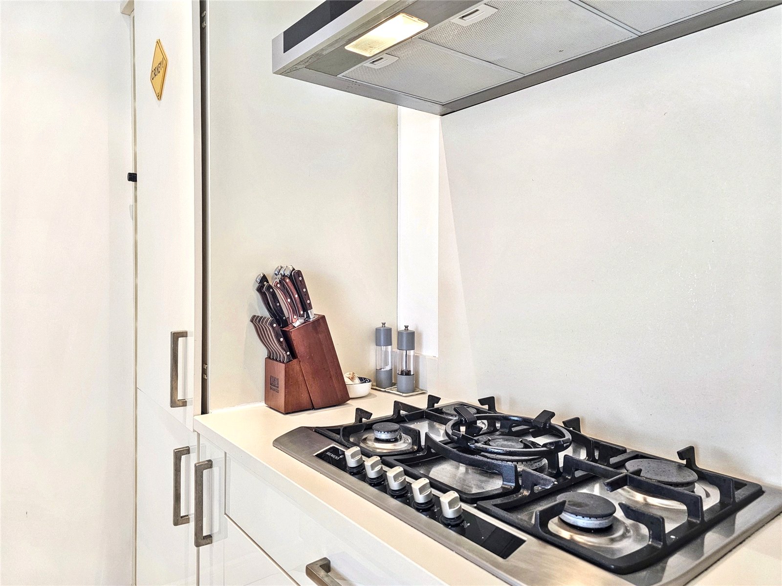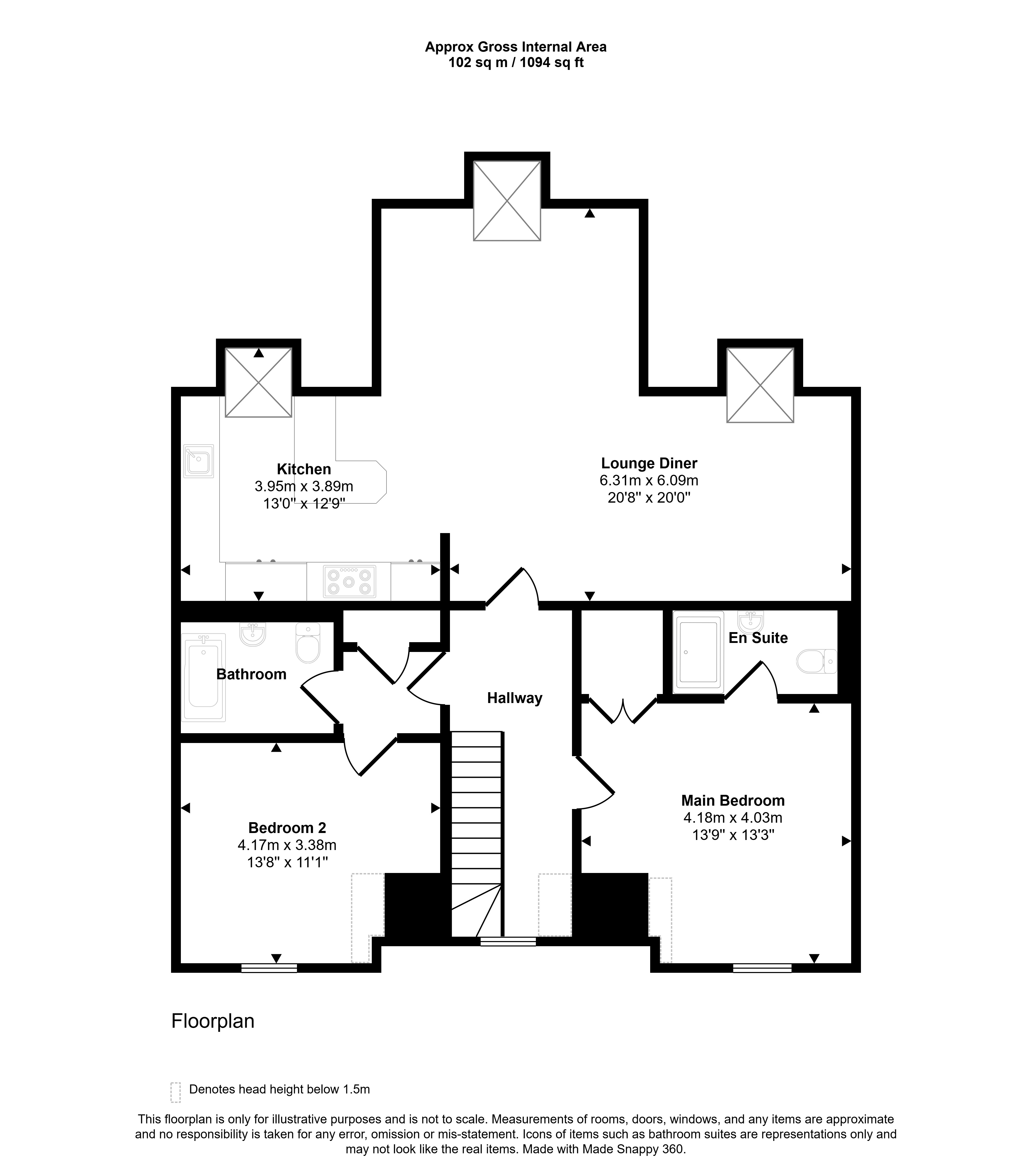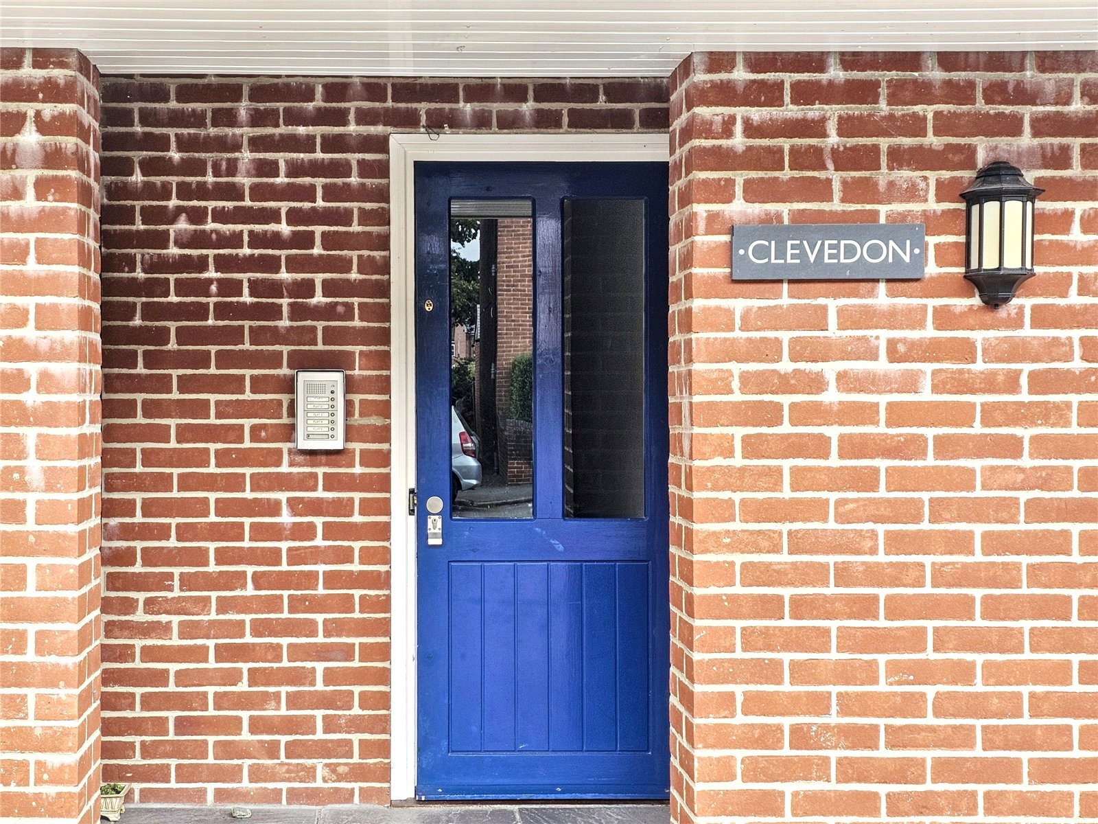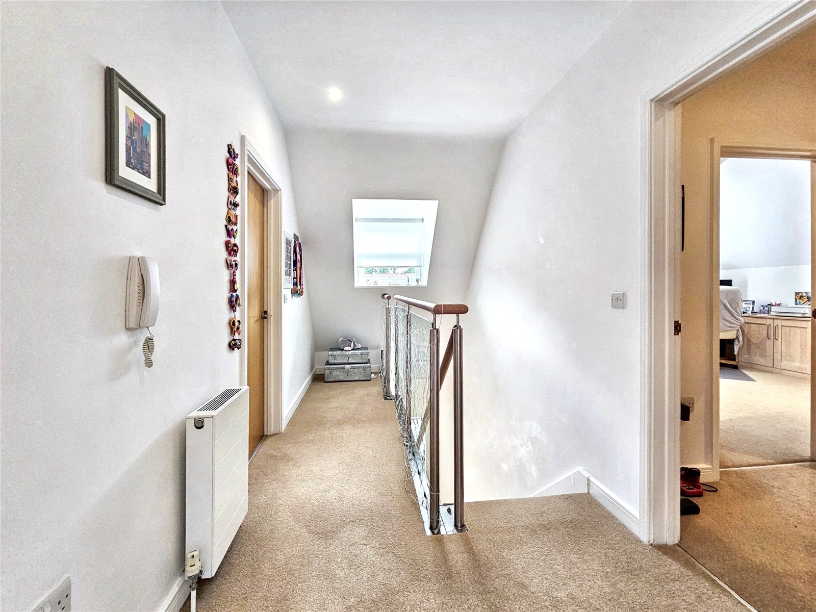 The hallway is accessed from a private staircase with stylish glass balustrading.