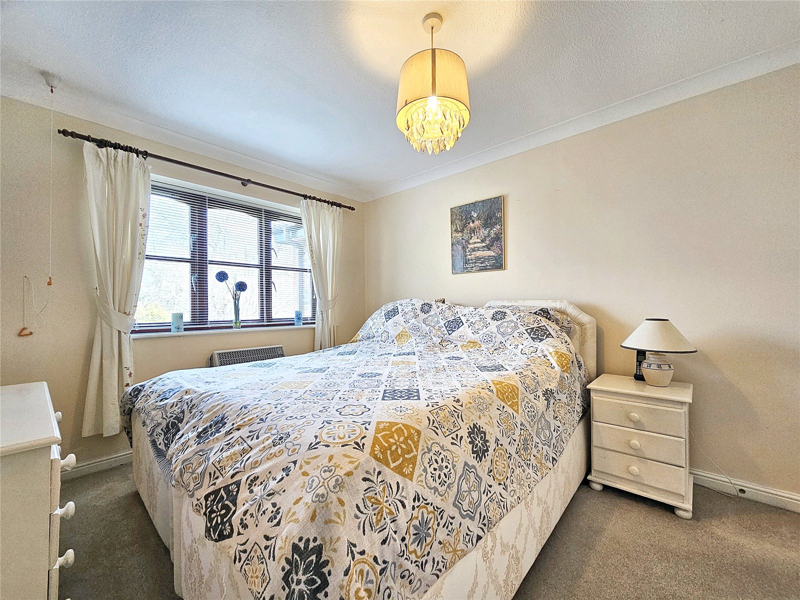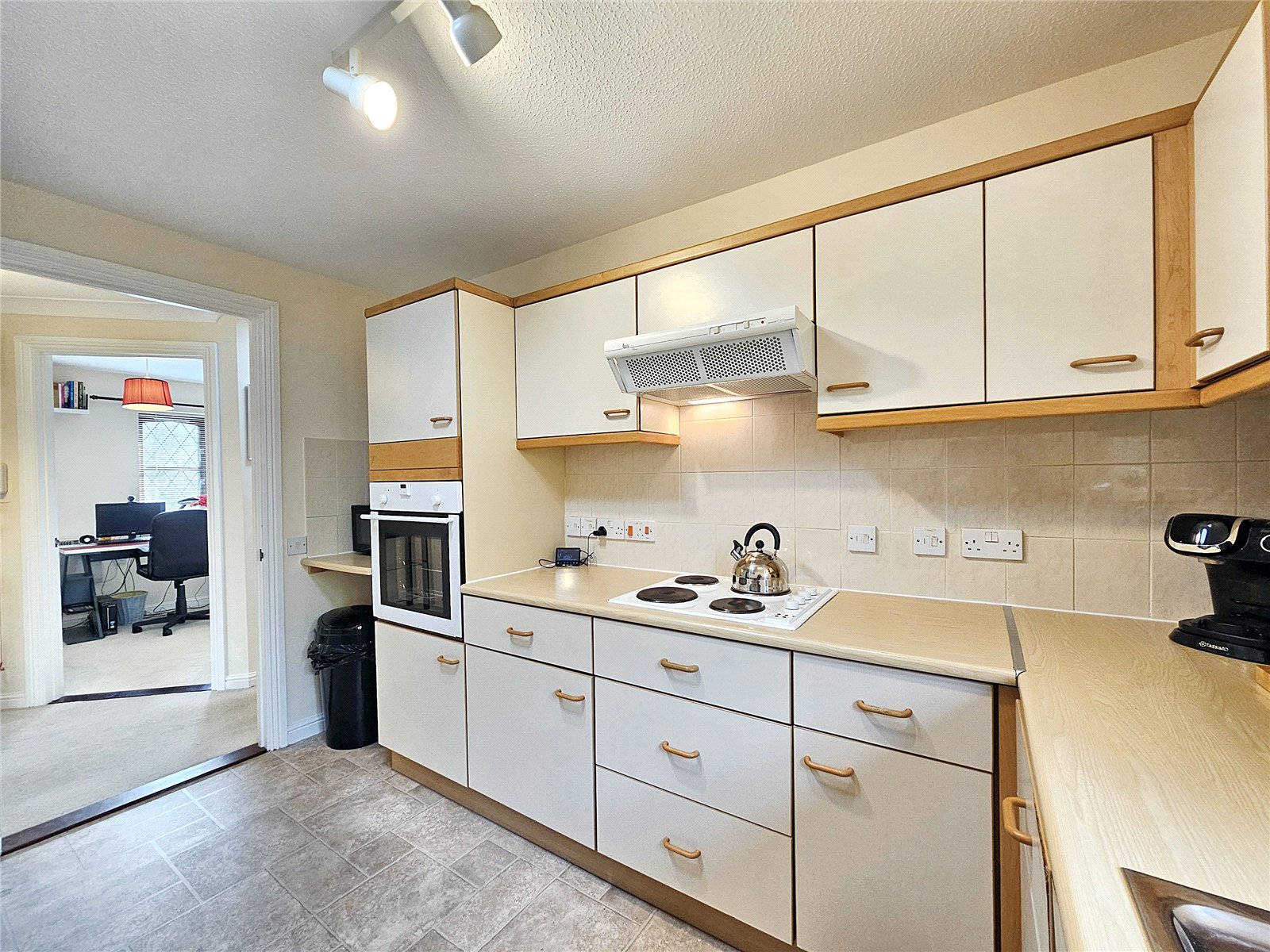 The home has a private front door with stairs leading to the hallway which has a bright feel due to the innovative light-tube having been fitted. The sitting room and main bedroom both enjoy a pleasing outlook over communal gardens and adjacent woodland whilst the kitchen/breakfast room is fitted with a comprehensive range of wall & base units and integrated oven, hob and filter, light tube. Other benefits include a modern shower room which also has a light-tube, double-glazed windows and electric heating with several of the heaters have been replaced with more modern units and an insulated and part boarded loft.
