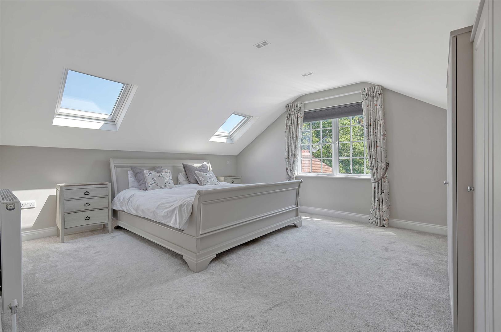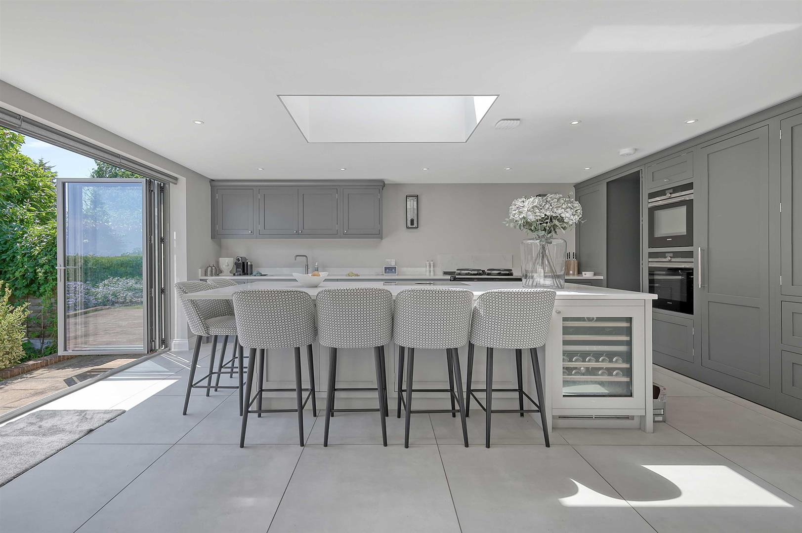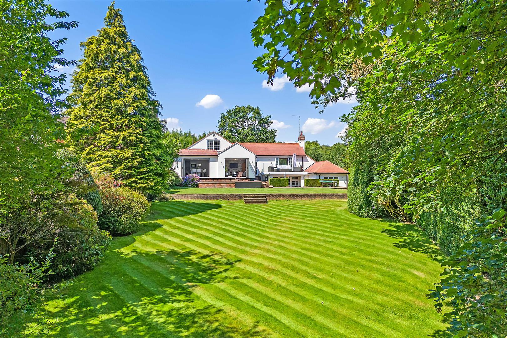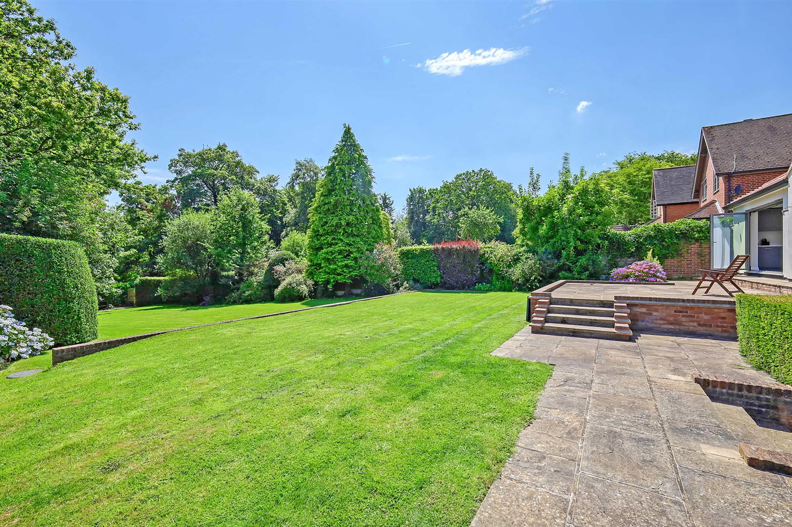 Having been substantially renovated by the present owners, the living space commences with an attractive entrance hall, which leads to a stunning bespoke kitchen by Brighton Kitchens, with open plan dining/living area and adjoining utility room. There are two main reception rooms, one to the lower ground floor with French doors to a covered terrace, the other with French doors to a raised, decked terrace, providing elevated views of the grounds. Further accommodation includes a master bedroom at first floor level with a luxury en-suite shower room, three further bedrooms - one with en-suite shower room, and a bathroom serving the two others. There is also a study/fifth bedroom to the front at ground floor level.